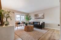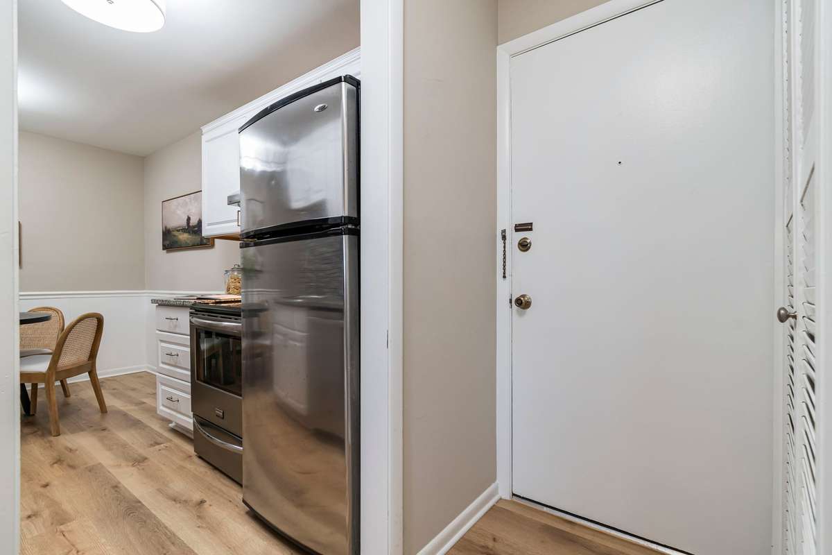 Inside, you' ll find a fresh, modern aesthetic featuring new Pergo Timbercraft waterproof laminate flooring, white shaker cabinetry, tile backsplash, and modern lighting throughout. The kitchen shines with stainless steel GE appliances, including a new top- control dishwasher, and sleek, clean lines that create a bright, contemporary feel. A convenient in- unit washer and dryer adds to the home’s comfort and functionality.