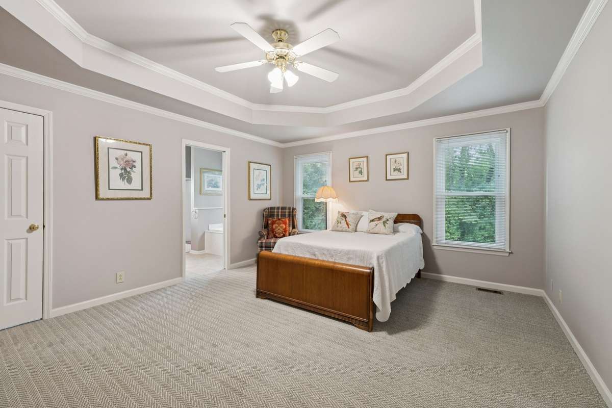 This beautifully maintained home in the heart of Franklin - 2nd owner - Perhaps the best lot in Dallas Downs - Located at end of the street with tree lined rear property line - Custom primary walk- in closet by Closets by Design - Hardwood floors throughout main floor and new carpet upstairs - Huge bonus room perfect for entertaining, theatre, workout space or more - Primary on main - Large deck from which to enjoy the manicured backyard - Front and back irrigation - New Apex windows with lifetime guarantee - Minutes from downtown Franklin, Target, restaurants, and grocery stores - Ample neighborhood amenities, including a pool, tennis and pickleball courts, basketball courts, and a playground - Long- term owners have lovingly cared for the property