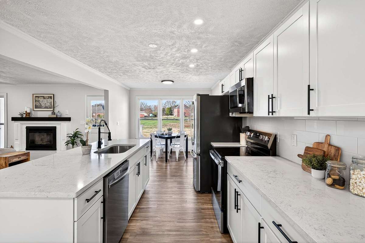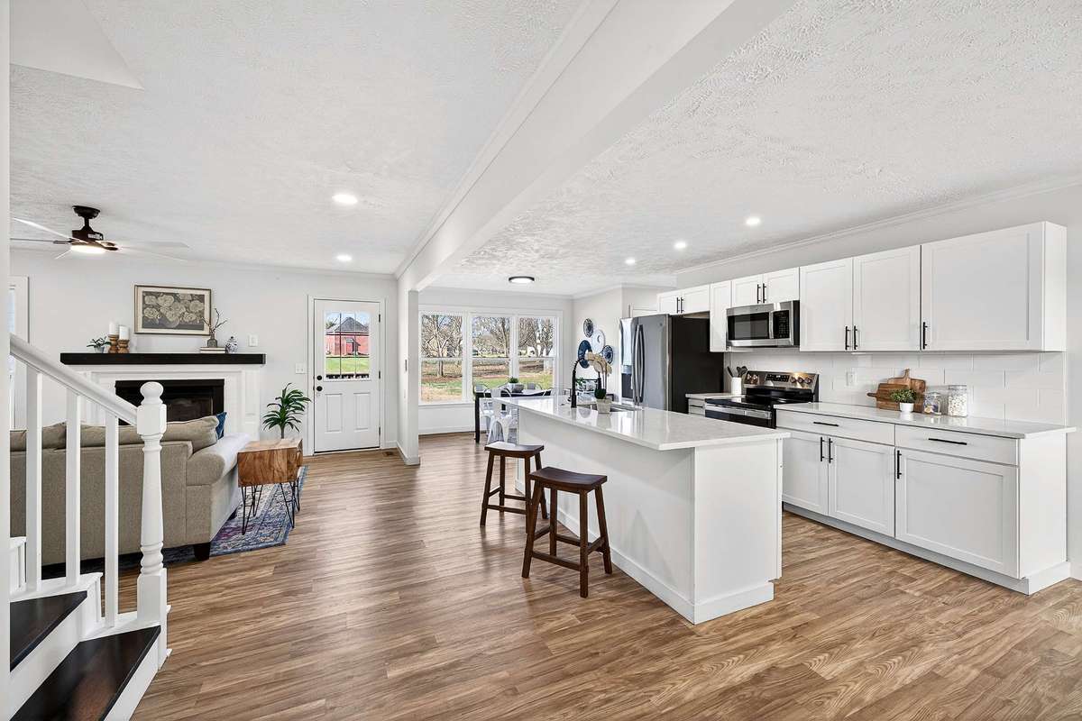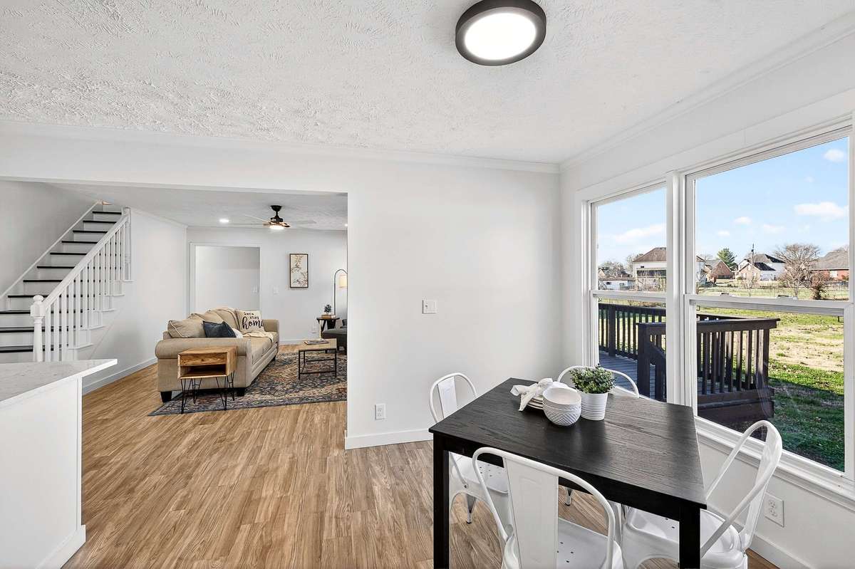 Step into this beautifully renovated home, nestled on nearly half an acre in Murfreesboro, blending modern elegance with warm comfort, featuring 3 spacious bedrooms and 3 full baths, with another large flex room w/ closet upstairs - with all luxurious upgrades you' ve been looking for! A welcoming covered porch with wood pillars sets the tone before entering a light- filled interior with LVP flooring and a cozy living room fireplace - perfect for chilly winter days. Entertain in style in the brand- new kitchen highlighted by an impressive 8- foot island, sleek white cabinetry, gleaming quartz counters, stainless steel appliances, and recess lighting that elevates the space. The dining room offers the ideal setting for memorable gatherings, while the primary suite delivers a spa- like experience with its floor- to- ceiling tiled dual- head shower retreat and a walk- in closet. Two more bedrooms share a second bathroom on the main level. Upstairs, a spacious bonus room, another full bathroom, and a large flex room provide options for working, relaxing, or additional bedroom space. Step outside to the deck overlooking a big back yard perfect for grilling and unwinding. The attached side 2- car garage and large driveway provide ample storage and parking. With a new HVAC, roof, and windows, you can move in with confidence and peace of mind. Located just minutes from 840 and 231 with quick access to top restaurants, shopping, and everyday conveniences, this high- end yet inviting home offers the lifestyle so many Middle Tennessee buyers are seeking - schedule your showing today!