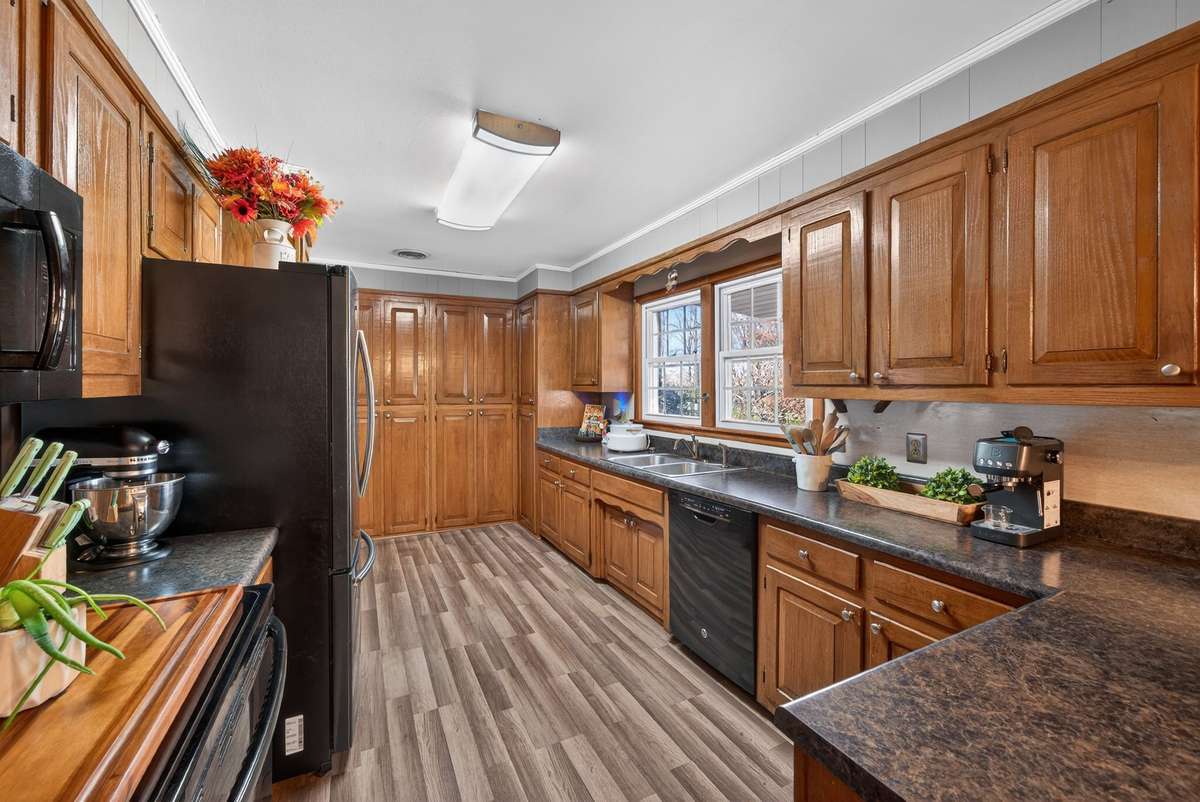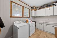 The main level features a nice kitchen with cabinets for days, a huge laundry room with tons of storage and even a full home intercom and radio system.