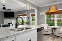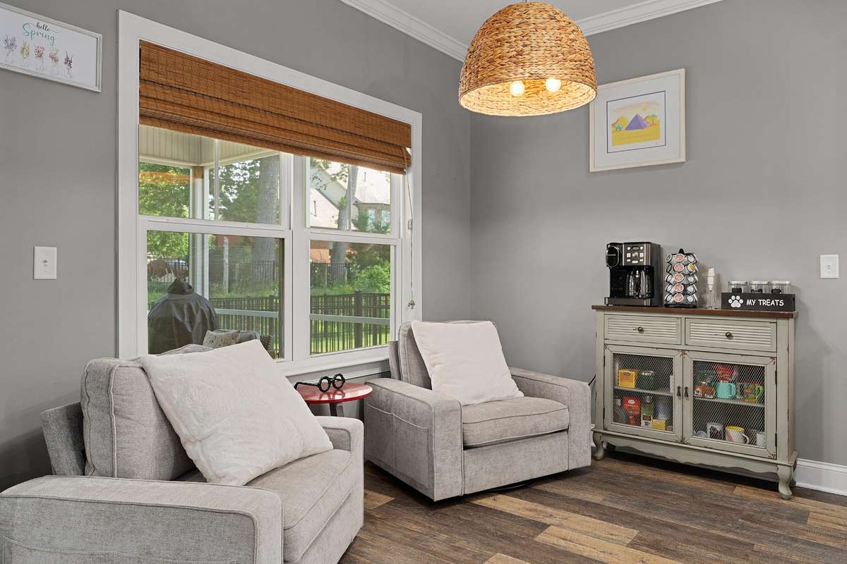 Great floor plan with many upgrades in the desirable Engel Park neighborhood! 4 bedroom, 3 full bath home with a guest bedroom on the main level, an open floor plan, a bonus room, a screened porch, level fenced back yard and a double garage! This home boasts great curb appeal with its Hardie and stone exterior and covered front porch, and you will love the interior finishes, including the LVP throughout, decorative and recessed lighting, window shades, granite countertops and plenty of storage. Entry to the home is via the dedicated foyer which has an enlarged doorway to the formal dining room on the right and the great room, kitchen and breakfast area just ahead. The kitchen has a center island with glass pendants, under- cabinet lighting, stainless appliances, a pantry and is open to the breakfast area which is currently being utilized as a keeping area. The great room has a gas fireplace and access to the screened porch which is perfect for everyday living and indoor to outdoor entertaining. The guest bedroom, full guest bath, mudroom with built- in bench and the garage round out this level. Head upstairs where you will find a bonus room with walk- out attic storage or expansion room, the laundry room, and 3 additional bedrooms and 2 full baths including the primary suite which has a walk- in closet and a private bath with a dual vanity, soaking tub, and a separate shower with tile and glass surround. All of this, and the neighborhood offers a pool and cabana with an outdoor fireplace, a future dog park and sidewalks in a super convenient location close to the Council Fire Golf Club, schools, parks, shopping, restaurants and medical facilities, so please call for more information and to schedule your private showing today. Information is deemed reliable but not guaranteed. Buyer to verify any and all information they deem important.