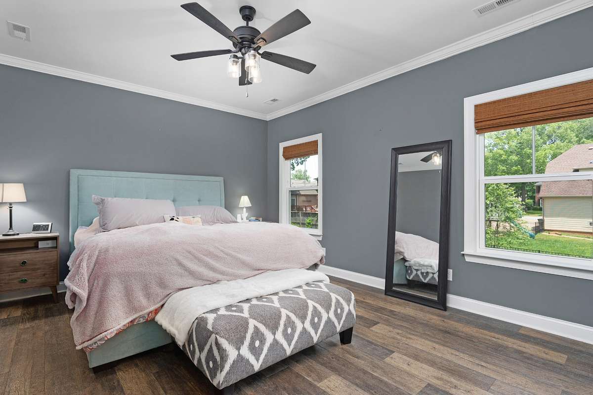 Great floor plan with many upgrades in the desirable Engel Park neighborhood! 4 bedroom, 3 full bath home with a guest bedroom on the main level, an open floor plan, a bonus room, a screened porch, level fenced back yard and a double garage! This home boasts great curb appeal with its Hardie and stone exterior and covered front porch, and you will love the interior finishes, including the LVP throughout, decorative and recessed lighting, window shades, granite countertops and plenty of storage. Entry to the home is via the dedicated foyer which has an enlarged doorway to the formal dining room on the right and the great room, kitchen and breakfast area just ahead. The kitchen has a center island with glass pendants, under- cabinet lighting, stainless appliances, a pantry and is open to the breakfast area which is currently being utilized as a keeping area. The great room has a gas fireplace and access to the screened porch which is perfect for everyday living and indoor to outdoor entertaining. The guest bedroom, full guest bath, mudroom with built- in bench and the garage round out this level. Head upstairs where you will find a bonus room with walk- out attic storage or expansion room, the laundry room, and 3 additional bedrooms and 2 full baths including the primary suite which has a walk- in closet and a private bath with a dual vanity, soaking tub, and a separate shower with tile and glass surround. All of this, and the neighborhood offers a pool and cabana with an outdoor fireplace, a future dog park and sidewalks in a super convenient location close to the Council Fire Golf Club, schools, parks, shopping, restaurants and medical facilities, so please call for more information and to schedule your private showing today. Information is deemed reliable but not guaranteed. Buyer to verify any and all information they deem important.