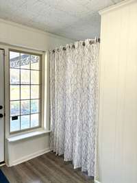 Cheery entrance from the carport leads to the bonus space and provides easy access to the kitchen.