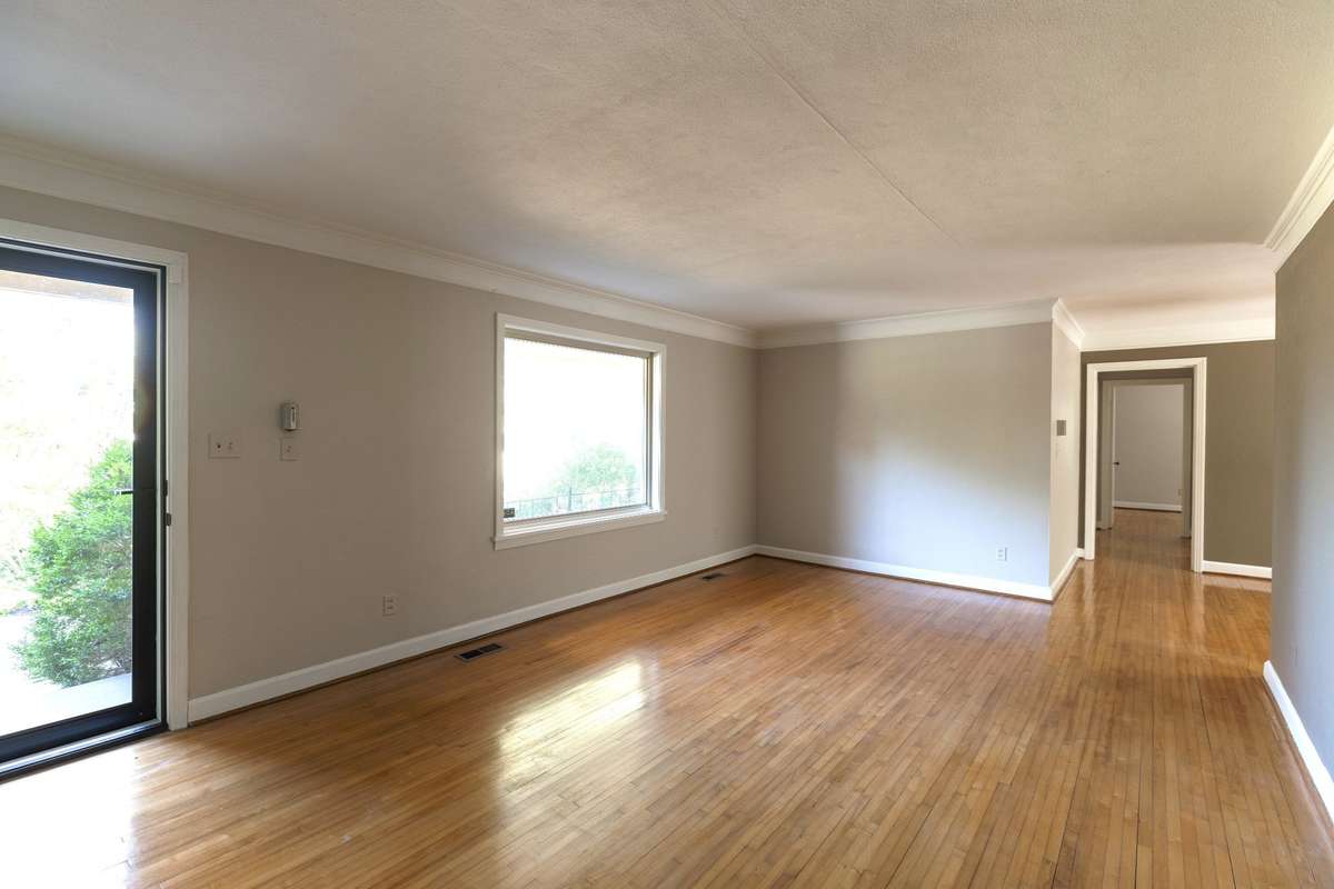 This large living room is big enough for a baby grand piano and comfortable seating area.