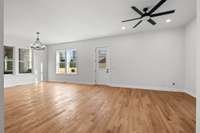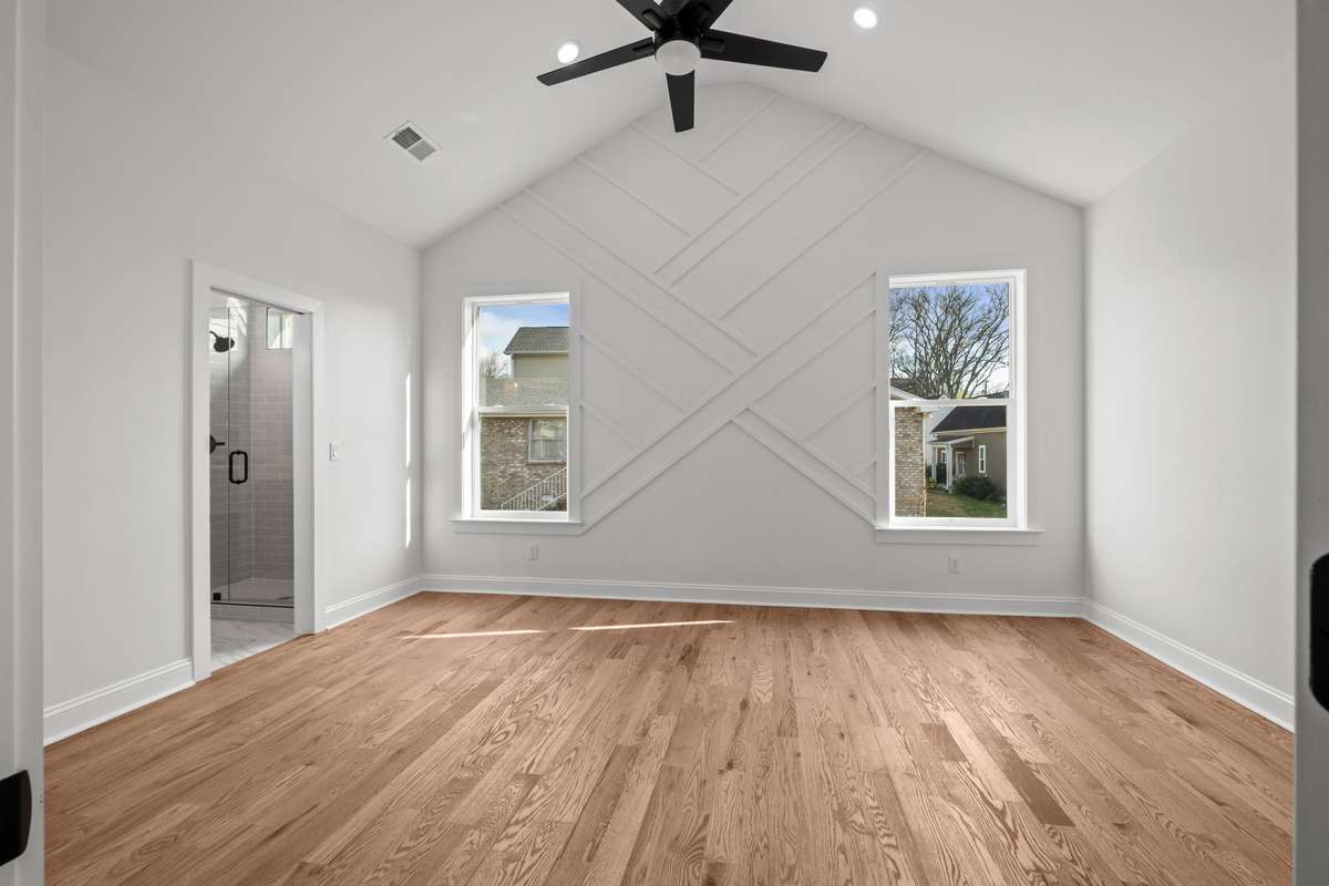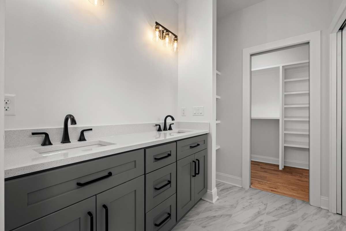 Brand new construction with a crisp, modern edge—full brick exterior, clean rooflines, and an oversized 2- car garage, all set behind a raised entry with sleek iron railings. Inside, wide- plank hardwoods and tall ceilings lead into an open, airy main level with recessed lighting and a thoughtful layout that actually lives well. The kitchen is the centerpiece: quartz counters, gray cabinetry with matte black hardware, stainless appliances, a farmhouse sink, and plenty of prep space for everyday meals or entertaining. A built- in drop zone/ mud bench keeps the entry organized, while upstairs you’ll find generous bedrooms including a standout primary suite with vaulted ceiling, feature wall, and a spa- style bath—double vanity, large tile shower with frameless glass, and an oversized walk- in closet. Out back, enjoy a fenced yard with a new deck—private, low- maintenance, and ready for grilling, pets, or play. Move- in ready and built with the finishes buyers want right now. Built with 2x6 exterior stud construction and backed by a 1- year builder’s warranty. Less than 4 miles to all things downtown.