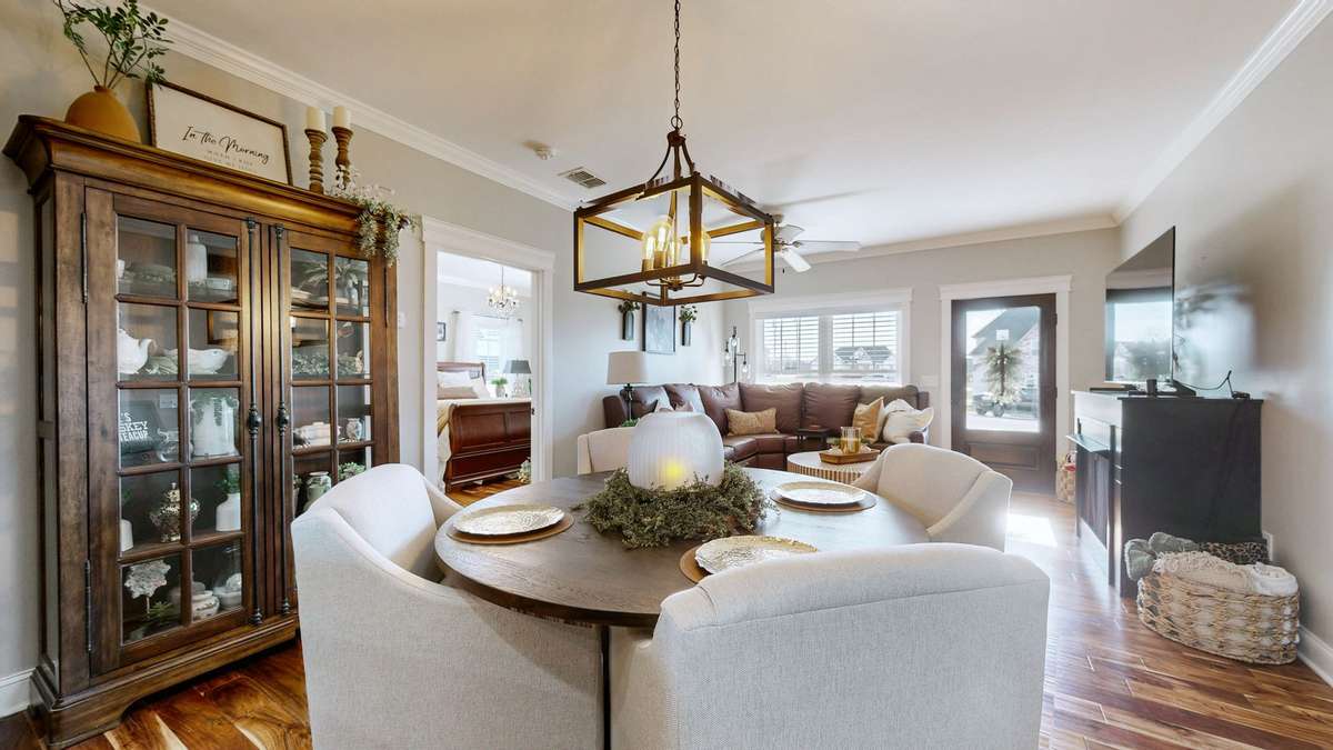 Inside this home you will find hardwood and tile flooring throughout. The custom designed kitchen is complete with SS Kitchen Aid Appliances - such as double ovens, beverage center and icemaker in island, commercial sized refrigerator, gas cook top, dishwasher, and built in microwave. The Great Room has gas log fireplace. You will love the size of the Master Suites with private baths and walk in Closets. Other Amenities include an additional 1/ 2 bath, gas heat, tankless hot water heater, hot tub hook up, RV Plug 30amp plug in garage, screened patio with TV, extra wide and long concrete drive, rock landscaping with mature plants- front and back . The two- car expanded 23x30 garage includes an extra deep bay perfect for golf cart parking/ boat or extra storage. This oversized cul- de- sac leaves plenty of room for home expansion and provided additional privacy between homes. Twin Creeks offers resort- style amenities including three pools, a marina with its own restaurant and bar, golf cart paths, boat rentals, a sandy beach, and even an RV park for visiting friends and family. Just minutes away, is the quaint downtown area of Winchester. Come and enjoy small- town charm with local dining options, a movie theater, coffee shops, boutiques and more.