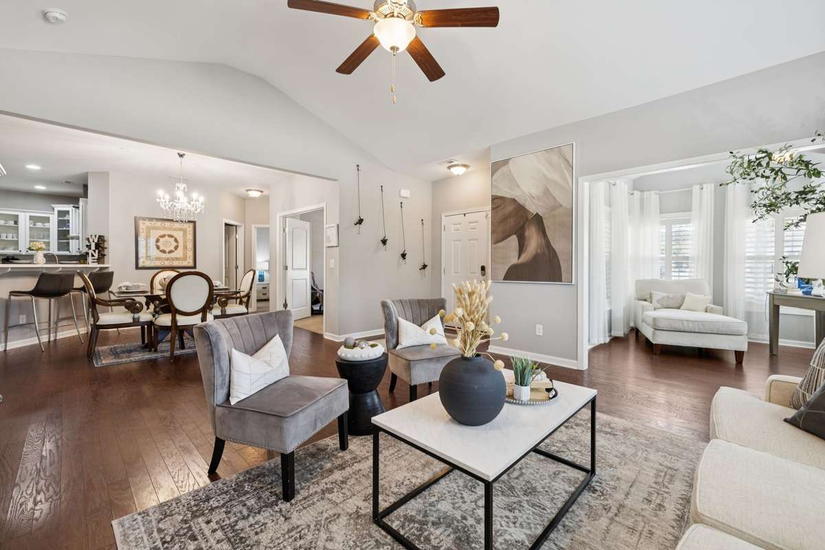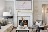 Check out this OPEN LAYOUT with vaulted ceilings, fresh paint, updated fireplace with new gas log insert, newly tiled fireplace surround and gleaming refinished hardwood floors!
