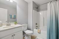 The main- level primary suite offers a private entry w/ new wall sconce, new ceiling fan, new custom wall sconces for reading light & ambiance, new hardwood flooring in bdrm & closet. The primary bath has double extended vanities, tiled shower, separate deep soaker garden tub, private water closet, new upgraded lighting, linen closet w/ upgraded wood shelf covers & the best part- the massive walk- in closet with Closets By Design built- ins to maximize space & keep the owners' closet beautiful & organized. There are 2 more bdrms on the main level & full bath to serve them both. The formal dining room has a new crystal chandelier & has been centered. A giant utility room w/ lots of shelves w/ space for your cleaning items & bulk shopping + a wash sink. Upstairs, you will find another suite- full bath, giant bdrm & humungous walk- in closet/ Could be bonus room & walk- out attic for storage. Fresh interior paint throughout adds a crisp, polished feel that ties everything together.