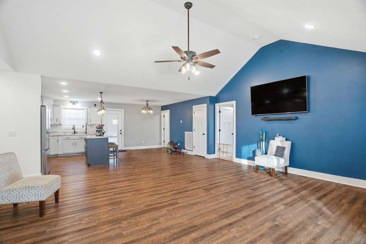 Welcome to this inviting one- level home situated on over 1. 25 acres, offering space, comfort, and modern style. The open floor plan features a vaulted- ceiling living room that creates a bright, airy atmosphere—perfect for everyday living and entertaining.