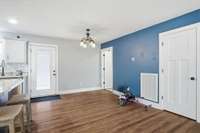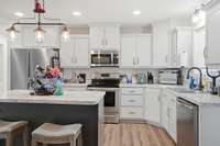 The kitchen is thoughtfully designed with stainless steel appliances, a tile backsplash, ample cabinetry, and a large walk- in pantry. Durable LVP flooring flows through the main living areas, while plush carpet adds comfort to the bedrooms.