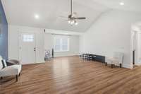 Welcome to this inviting one- level home situated on over 1. 25 acres, offering space, comfort, and modern style. The open floor plan features a vaulted- ceiling living room that creates a bright, airy atmosphere—perfect for everyday living and entertaining.
