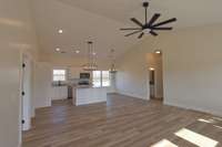 Brand new barndominium home on 5 acres with vaulted ceilings, granite countertops, stainless steel appliances, LVP flooring throughout, and upgraded wooden shelving in the pantry and walk- in closets in each bedroom! Come check it out!