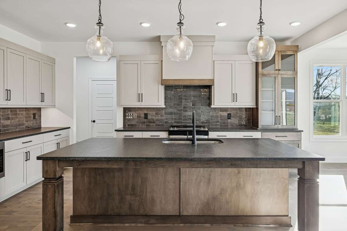 The main- level primary suite is a true retreat with a large bathroom that includes split vanities, a free- standing tub centered between them, a generous walk- in shower with a bench, and a massive 17’x8’ walk- in closet with its own bench seating. The home also boasts an oversized walk- in pantry, a spacious laundry room, and an oversized side- entry garage.