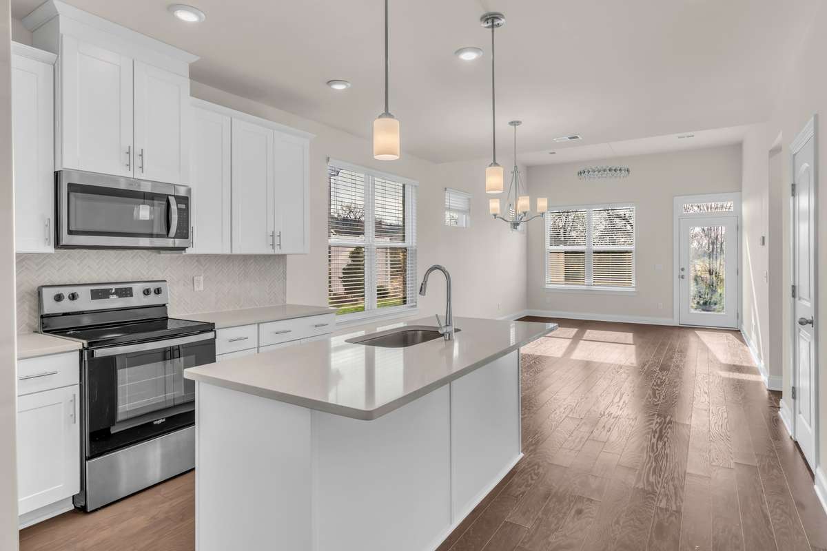 END Unit with Open Floor Plan, Kitchen Island, Stainless appliances, Primary Bedroom Down, large walk- in Closet, Laundry room with washer & dryer, Pantry! 2 great sized bedrooms upstairs, large closet, walk- in closet, large storage room, bonus room/ loft. Double vanity in bathroom upstairs! Walking distance to the New Publix, restaurants & shopping! Great Schools nearby! About 5 min to Hwy 386, and 30 min to Nashville.