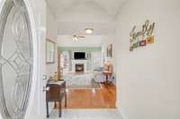 Inside, the 2, 144 sq ft home features 3 bedrooms and 2 bathrooms with hardwood floors throughout and an inviting, open layout. The living room features a cathedral ceiling and fireplace, while the kitchen is thoughtfully designed with granite countertops, hardwood cabinetry, ceramic tile backsplash, and stainless steel appliances. The home offers true one- level living with the added flexibility of a large upstairs bonus room, ideal for a media room, home office, or guest space. The Master suite features a fully renovated bathroom with walk- in tile shower and double vanities. Other home upgrades include the less than 2 year old roof, and recent flooring and painting.