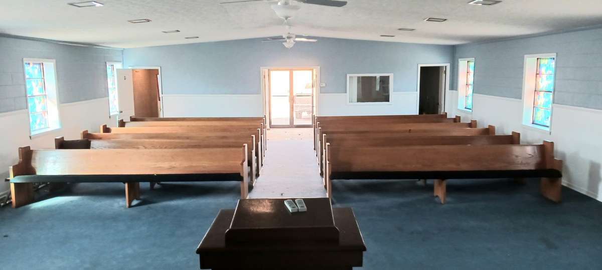Currently set up for a church with a large sanctuary, seats approximately 300, stage and baptismal. Can also be converted to residential under the current zoning. All brick building on 1. 4 acres with 3840 total sq ft. 1920 ft on the main level including a front lobby and two other rooms and two restrooms. 1920 additional ft downstairs with multiple rooms along with a kitchen and large open space which has been used as a fellowship hall. Paved parking lot with a large sign. Please refer to the document section for Current Conditional Uses and Permitted Uses