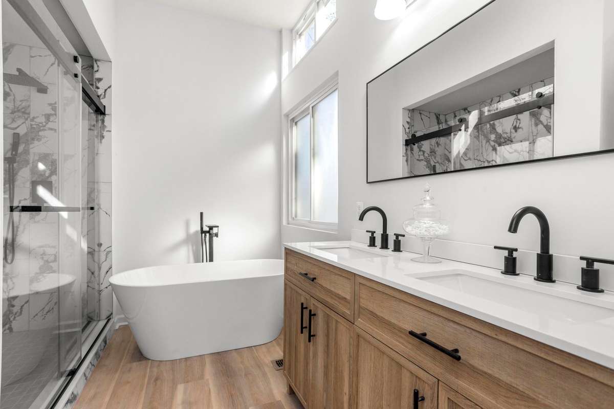 Upstairs, the carpet offers a soft, cozy feel, while both bathrooms have been completely retiled for a fresh, clean look. The primary suite is a true retreat, boasting a modern free- standing soaking tub that adds a touch of luxury to your daily routine.
