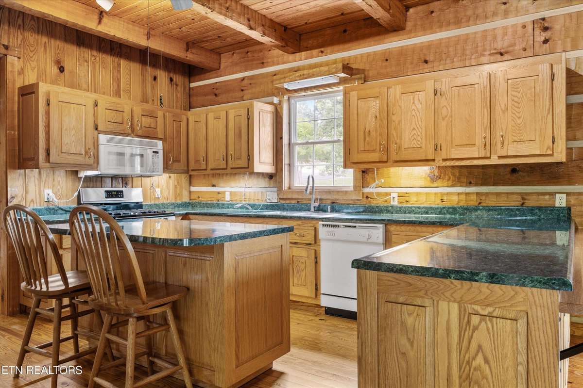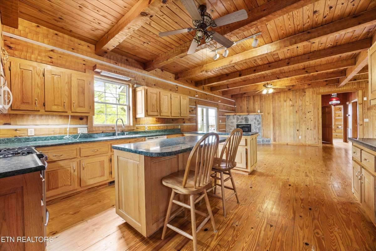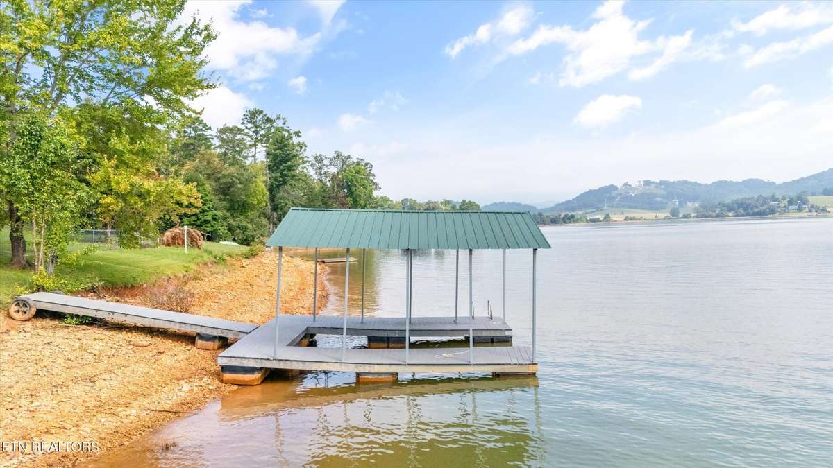 Welcome to this beautiful custom built log cabin in the German Creek Cabin Site Subdivision, on Cherokee Lake. This unique property, built by Gust Timbercraft Log Homes, sits on just over an acre, plus has lake front access and comes with a covered dock. Single level living offers an open floorplan, 3 bedrooms and 2 bathrooms all on the main level, but there is also a large partially finished basement ready for your special touch. Rustic wood beams and heart of pine paneling and floors give this home a warm and inviting interior. The two- car garage is tall, with separate oversized garage doors. Outside you' ll find 3 covered porch and deck areas, and a lot that is level then slopes down towards the lake. Across the road, the property continues to the lake where the dock awaits you. Recent survey ( July 2025) is on file with Grainger Co. Subdivision does not allow short term rentals. Buyer to confirm all information.