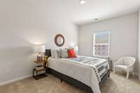 Designed to shine, the Cameron floorplan offers open living and dining areas creating a welcoming space to gather. In the kitchen, shaker style cabinets are paired with quartz countertops and a crisp white backsplash, adding contrast and a modern finish that elevates the entire space. A convenient powder bath and smart storage keep the main level both stylish and functional.