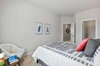 Upstairs, you are welcomed into a serene owner’s suite featuring two walk- in closets—rare for townhome living—and a private bath with dual sinks and a walk- in tiled shower. Two additional bedrooms, each with walk- in closets, offer flexible living options for guests, work- from- home needs, or hobbies. An upstairs laundry room adds everyday convenience. Additionally, the alley- loaded 2- bay garage keeps the exterior polished and gives extra room for storage.