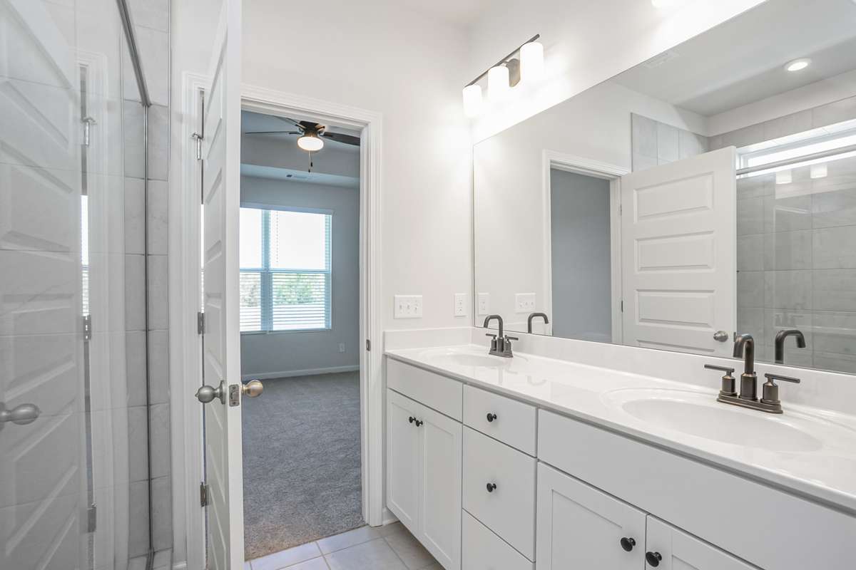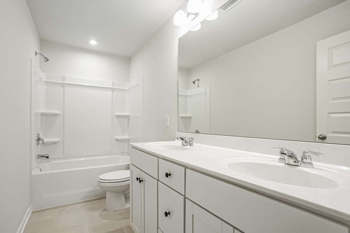 Full bathroom upstairs with double vanities. Tiled shower optional.  **All photos are of a previously constructed Covington floorplan.**
