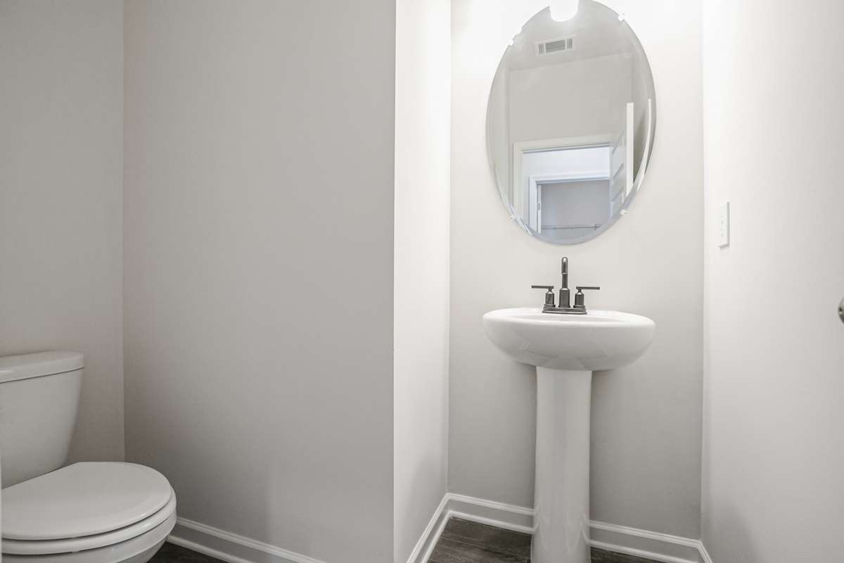Powder room downstairs off main living area for guests.  **All photos are of a previously constructed Covington floorplan.**