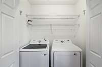 The spacious kitchen boasts granite countertops, ample cabinetry, a separate pantry, and an open flow ideal for both daily living and entertaining. The conveniently located laundry closet is just off the kitchen.