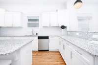 The upgraded kitchen features premium finishes, generous storage, and 2024 updates, including a touchless faucet and new garbage disposal.