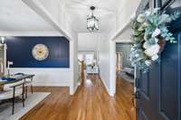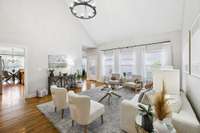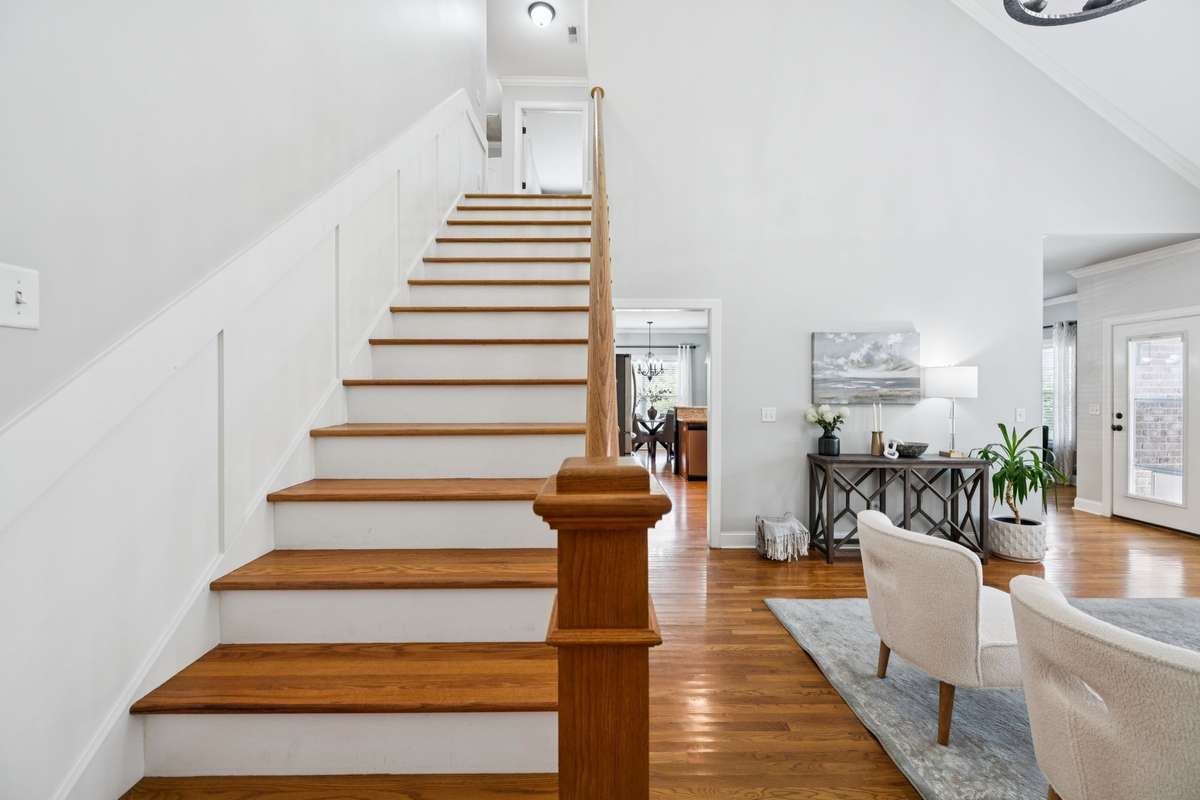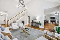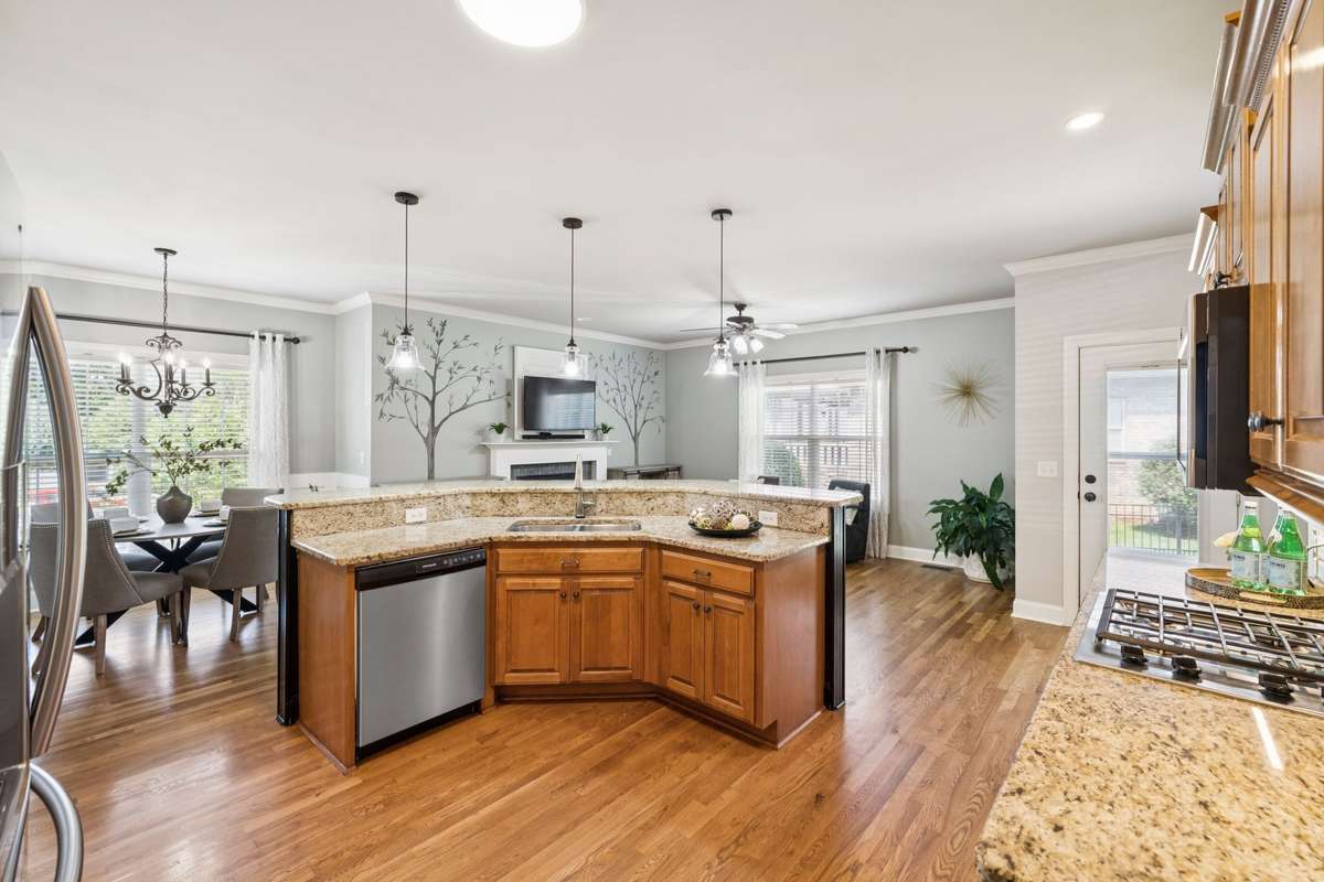 The great room is warm & welcoming w/ soaring ceilings & abundance of natural light. Just off the kitchen, the cozy hearth room invites guests to gather and stay awhile. The kitchen itself is well- equipped w/ granite countertops, a center island, tile backsplash, under- cabinet lighting, walk- in pantry & stainless appliances- including a French door refrigerator+ 2nd French door fridge, conveniently located in the laundry rm. The eat- in and formal dining room gives additional seating for all your gatherings.