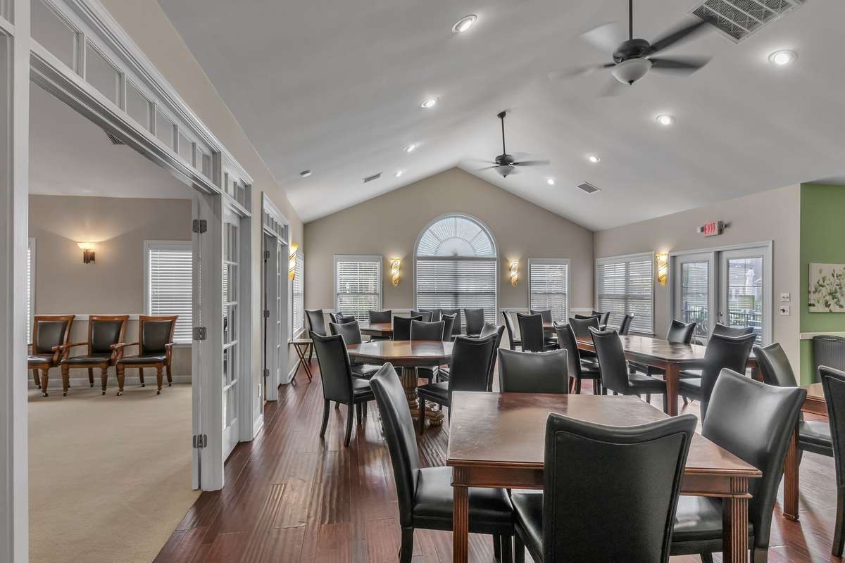 The Clubhouse featuring the library, fitness, and social space with tables and a kitchen for parties or social events