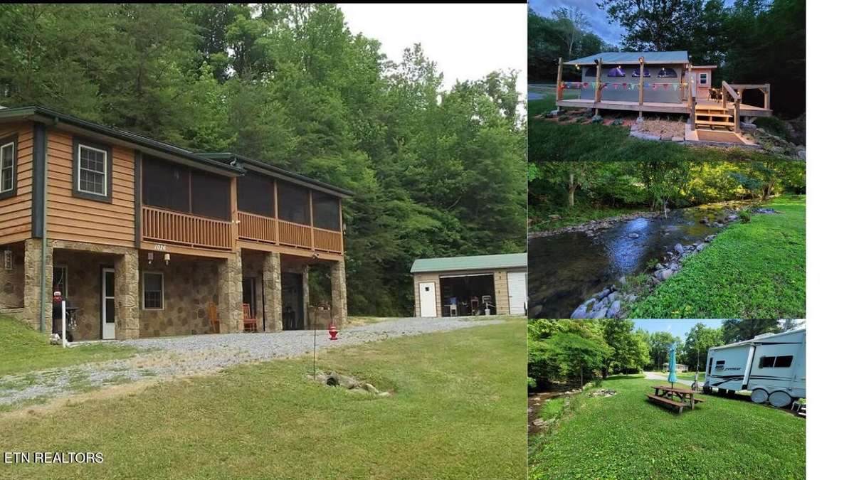 This rare property offers both a beautiful home and an established, income- producing campground. Nestled on 1. 8 acres along Trail Fork Creek, it blends a Smoky Mountains lifestyle with built- in business potential. The two- bedroom, two- bath home, built in 2008 with 1, 729 square feet, features a spacious kitchen with cathedral ceiling and water filtration, French doors, and a screened 6x40 deck overlooking the garden and creek. Additional amenities include a 600- square- foot two- stall workshop, a 10x25 greenhouse, a 10x25 chicken coop with covered run, garden with water and electric, wraparound drive, attached garage, and camera system.