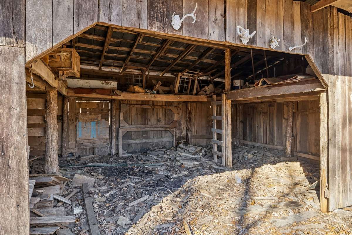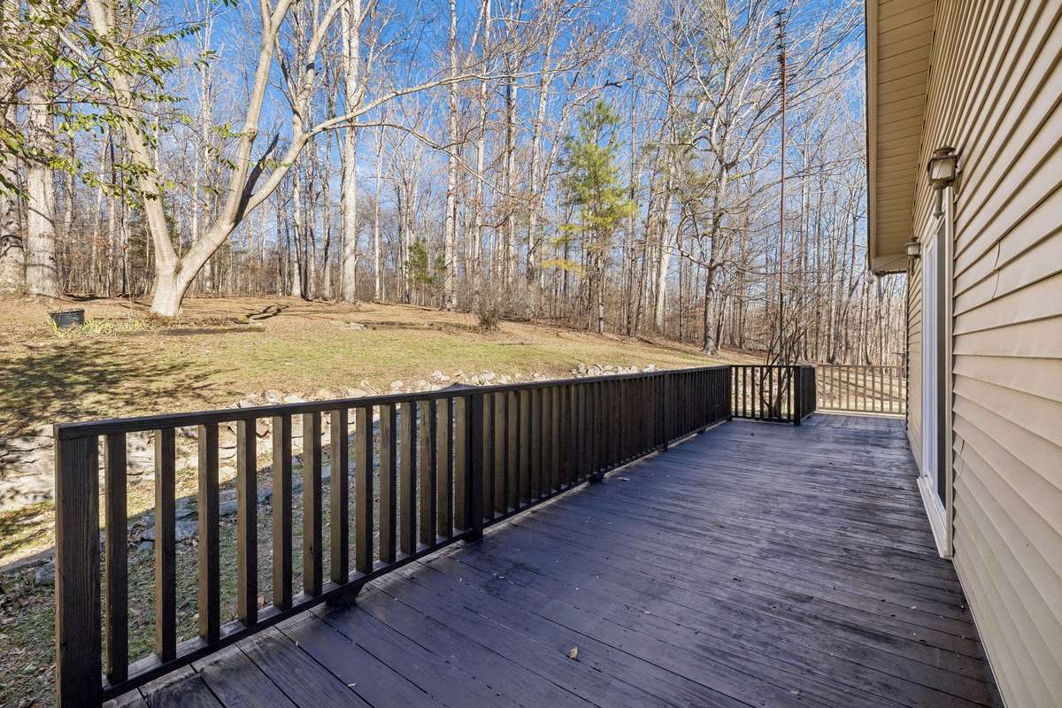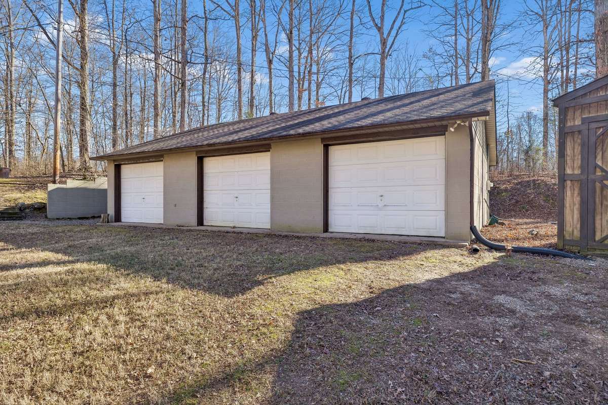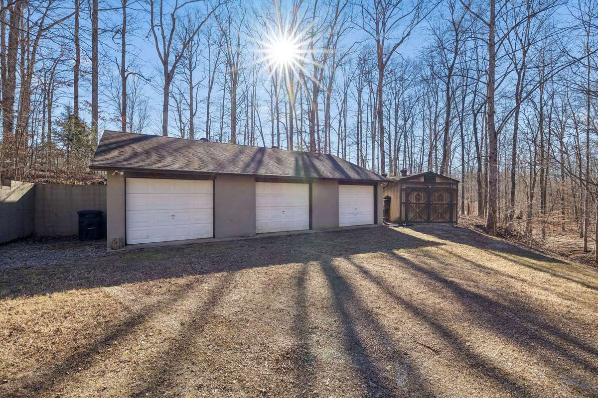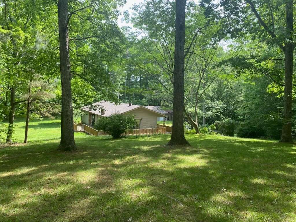 Outdoor living includes a newly stained wraparound deck overlooking the wooded acreage, creating a quiet space to relax and enjoy the natural setting. The property includes a one- car attached garage and an oversized three- car detached garage with workshop space. The property includes a spacious storage shed for storage and an old barn that adds character.