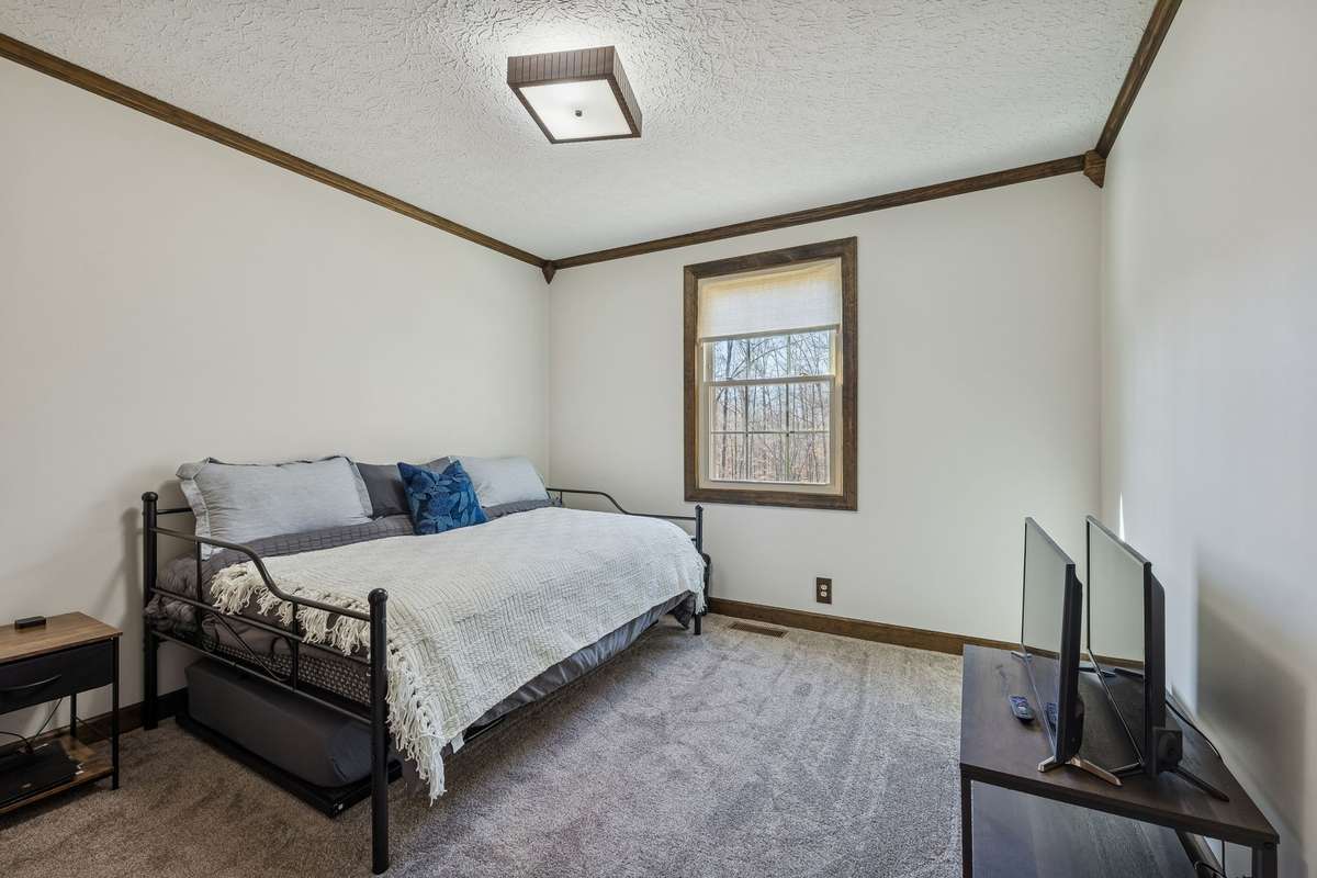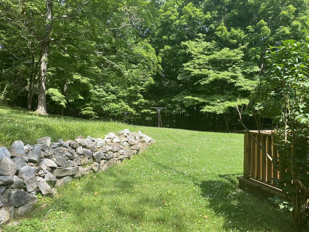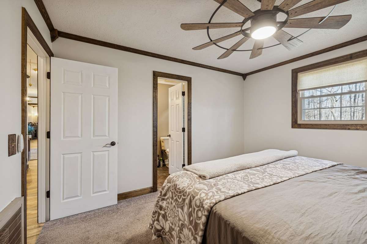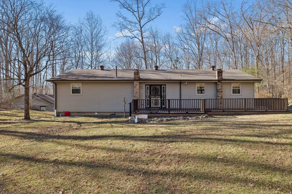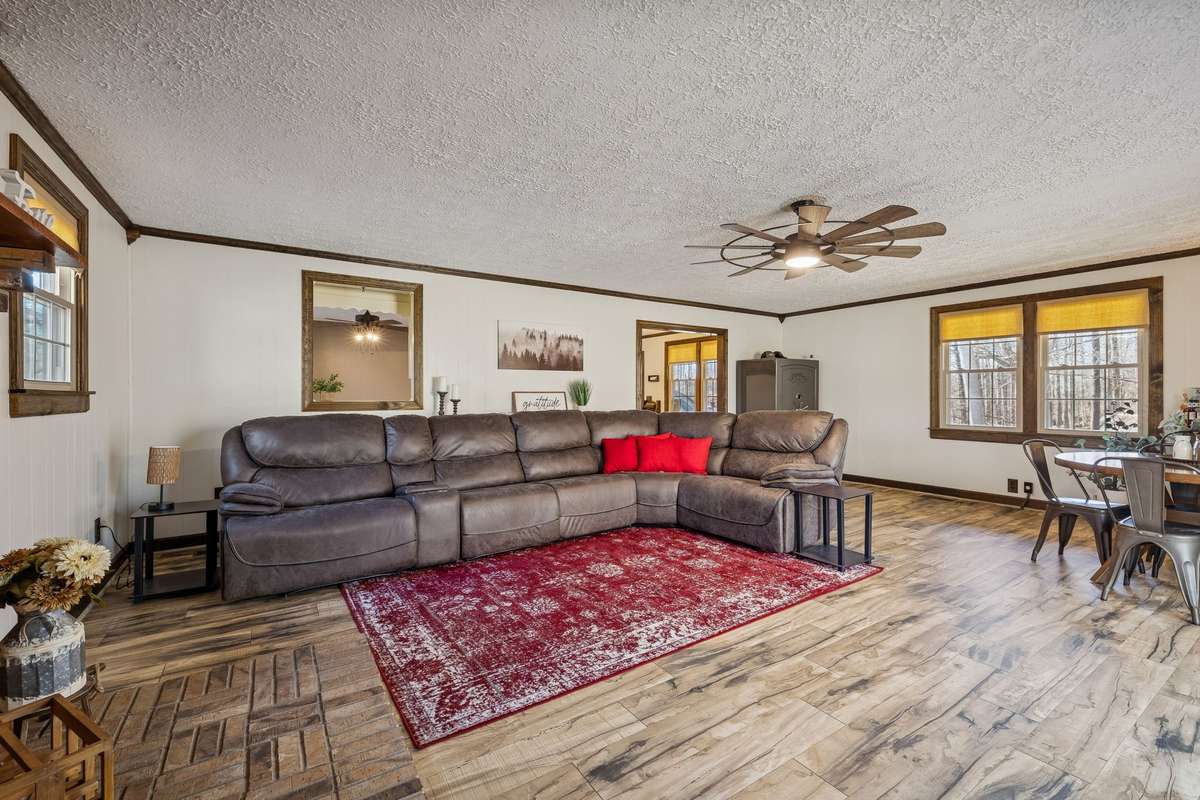 Outdoor living includes a newly stained wraparound deck overlooking the wooded acreage, creating a quiet space to relax and enjoy the natural setting. The property includes a one- car attached garage and an oversized three- car detached garage with workshop space. The property includes a spacious storage shed for storage and an old barn that adds character.