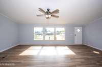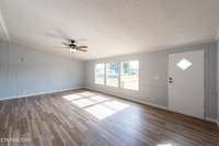 Open floor plan, split bedroom design ranch home at end of cul de sac location. Remodeled with New siding, new HVAC, new cabinets, new vanities, new flooring, fresh paint, new lighting fixtures. 10 year transferable warranty on HVAC. Large living room / dining room combo with kitchen with center island, pantry, & new appliances, new sliding glass doors to 1 of 2 new rear decks. Oversized master bedroom with his and hers bathrooms with new vanities, soaking tub and walk in shower and his and hers closets. 2 additional guest bedrooms with guest bathroom. Large laundry room with access to 2nd new rear deck. Huge partially fenced yard with concrete paths and concrete pad and 2 large storage sheds. Home eligible for 100% VA financing and also 96. 5% FHA financing.