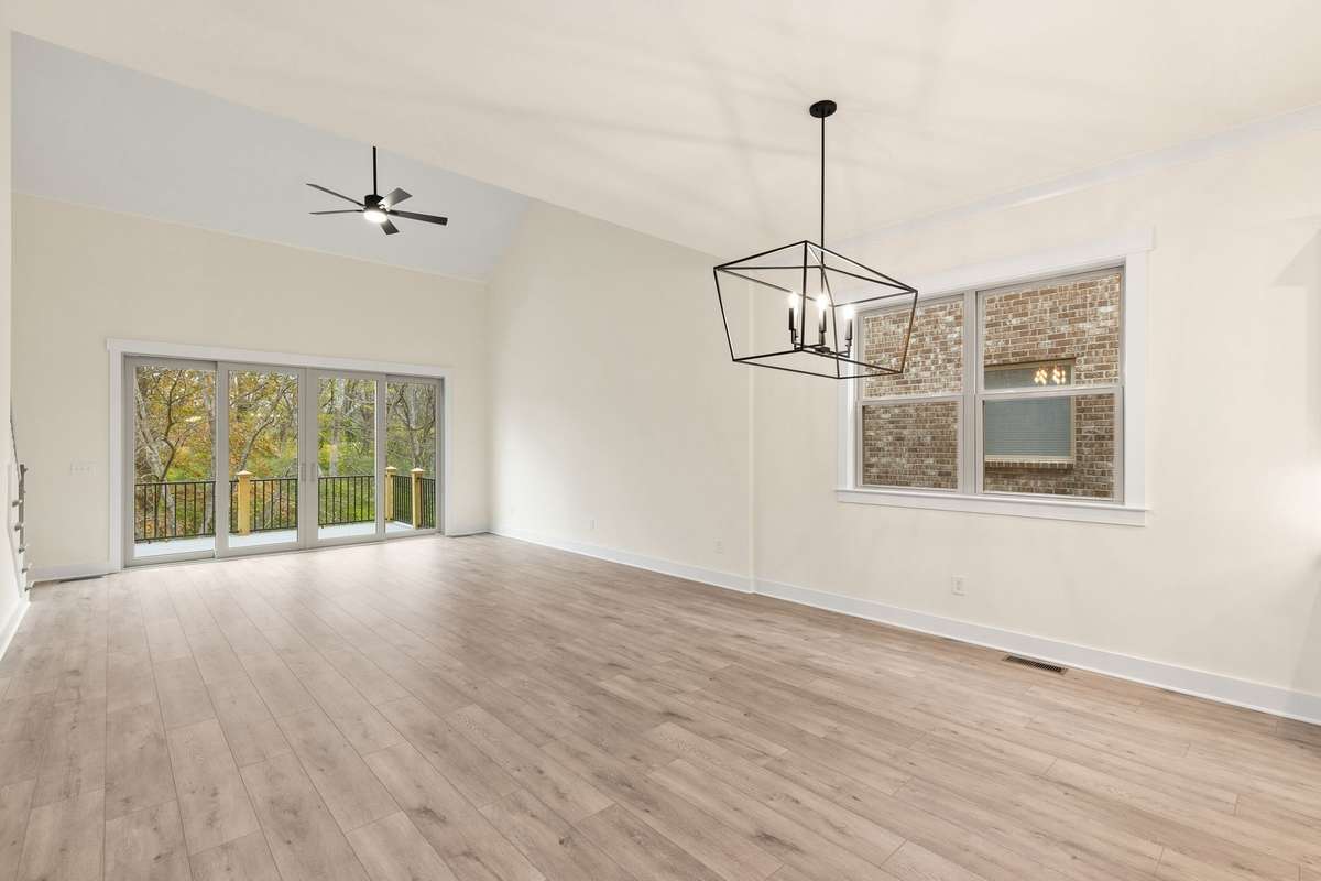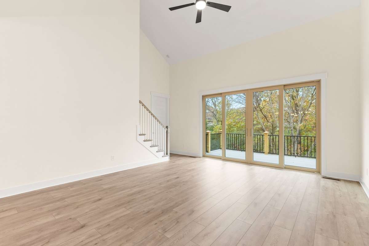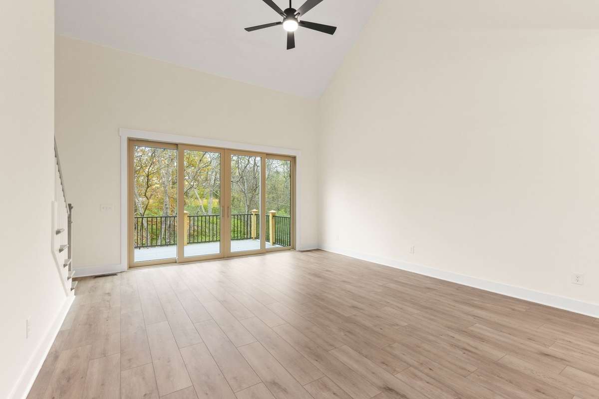 Finished walk- out basement! Home Backs Up To Common Area with Mature Trees! Gated Community with Pool, Clubhouse & Walking Trails next door to Bluegrass Yacht & Country Club. Complete With Modern Finishes. Primary Bedroom located on the main level with Large Tiled Shower including a Bench Seat and Free- Standing Tub. Beautiful Hardwood Floors, Kitchen with extra LRG 8' Island, Stainless Steel Appliances Including Gas Range, Quartz countertops and Tile Backsplash is open to the Dining Area & Great room. Office on first floor. Walk- out basement has a huge living area, bedroom, full bath and access to back yard patio. Vaulted ceilings on main level. Large Deck. Loads of Storage! Lawn maintenance, Irrigation System and watering is maintained by HOA. Call agent for details.