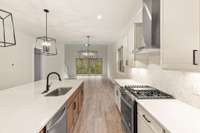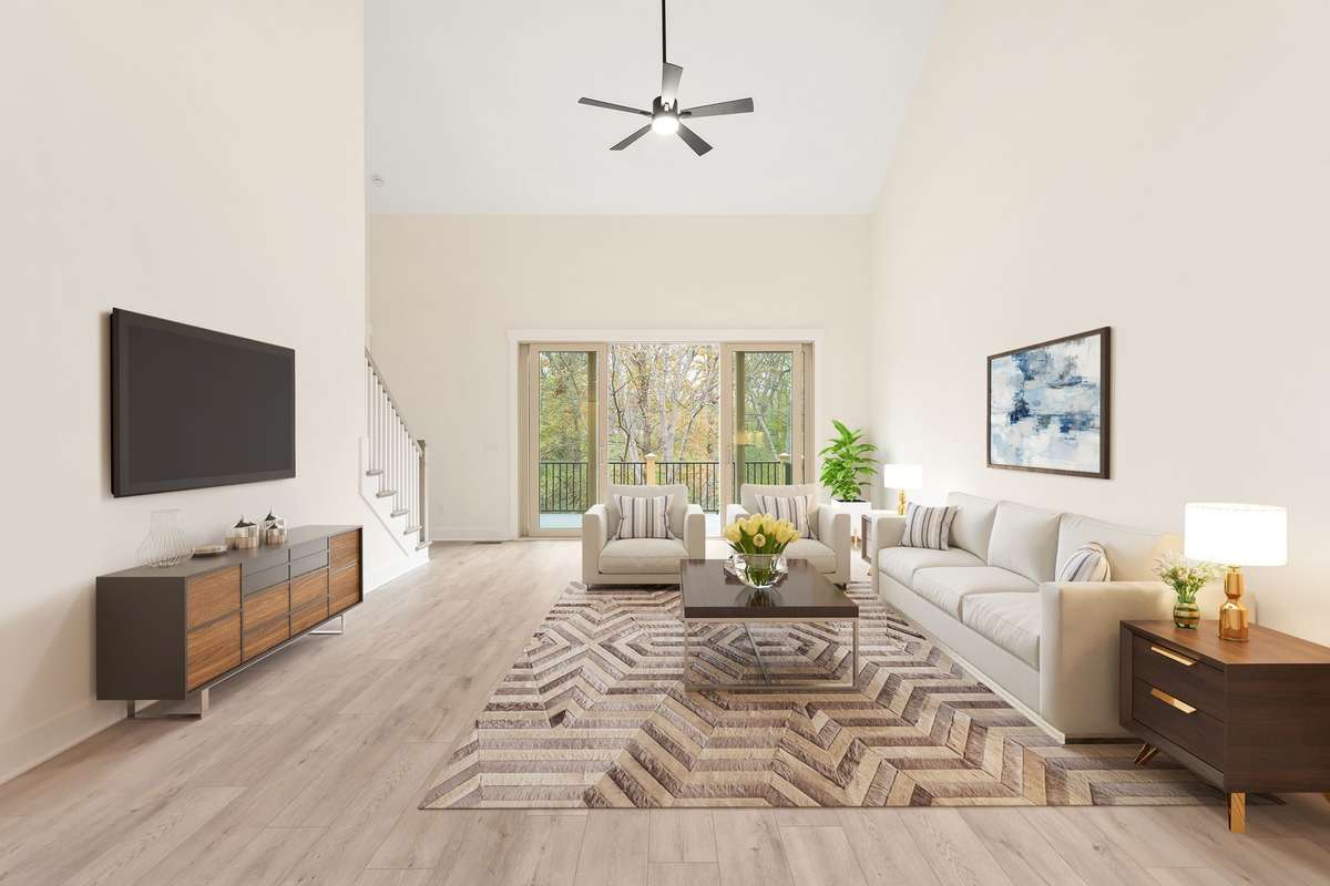 Virtually Staged Great Room. Open concept living room, dining and kitchen.