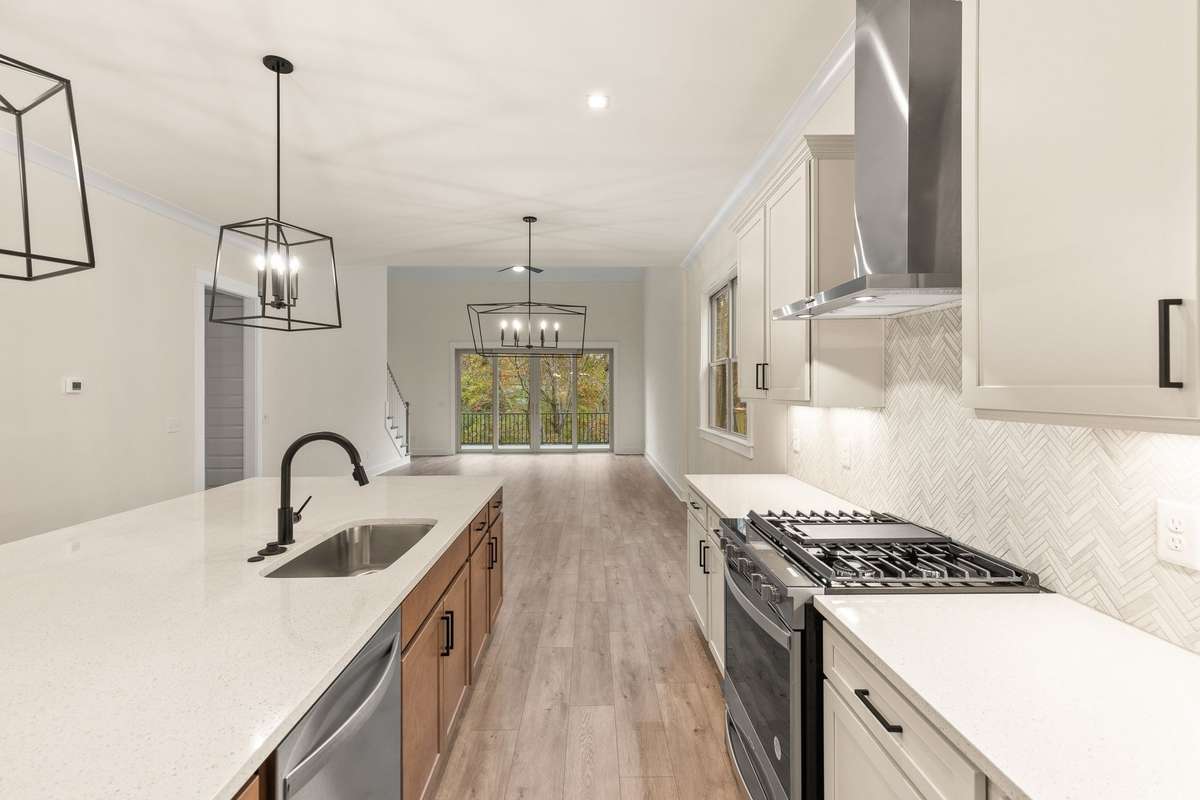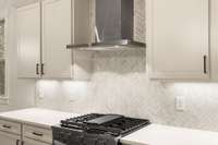 Stainless steel appliance, Tile backsplash, Quarts counter tops and large walk-in pantry create a beautiful kitchen.