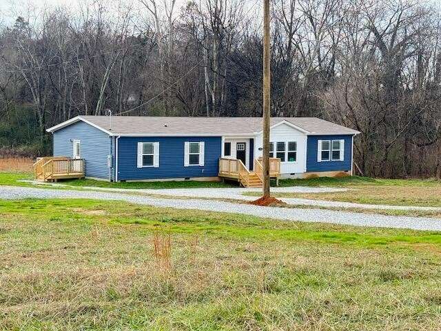 Large craftsman/ farmhouse style home on almost an acre with split bedroom design, sheet rock walls, 9ft ceilings. Luxury abounds in the massive home from the entrance hall with craftsman style front door and coat area to the well appointed Kitchen/ Dining area with trey ceiling & huge center island with SS European hood and appliances, apron sink & pantry. Built in entertainment center in living/ family room with exposed farmhouse style beams. Huge master bedroom with oversized walk in closet and ensuite bathroom with double vanities, double walk in shower, soaking tub and linen closet. 2 additional guest bedrooms with jack and jill guest bathroom. Additional half bath in hallway leading to immense laundry/ mud room with built in shelving, laundry sink and pantry. New rear and front decks and plenty of room to roam. Home eligible for 100% financing with USDA or VA loan, 96. 5% financing with FHA loan, also possible seller financing.