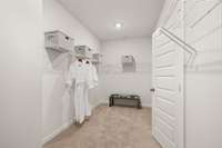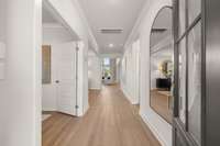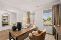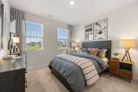 The first floor of this two- story home shares an open layout between the kitchen, nook and family room for easy entertaining and access to the patio for outdoor lounging. A more formal dining room is at the front of the home for dinner parties and a study to work from home. Two bedrooms are on the first floor, including a luxe owner' s suite and a secondary bedroom, ideal for overnight guests. Upstairs are three secondary bedrooms, a versatile game room and a media room for added living space. * Images from a furnished model of this home. Actual configuration and features may vary.