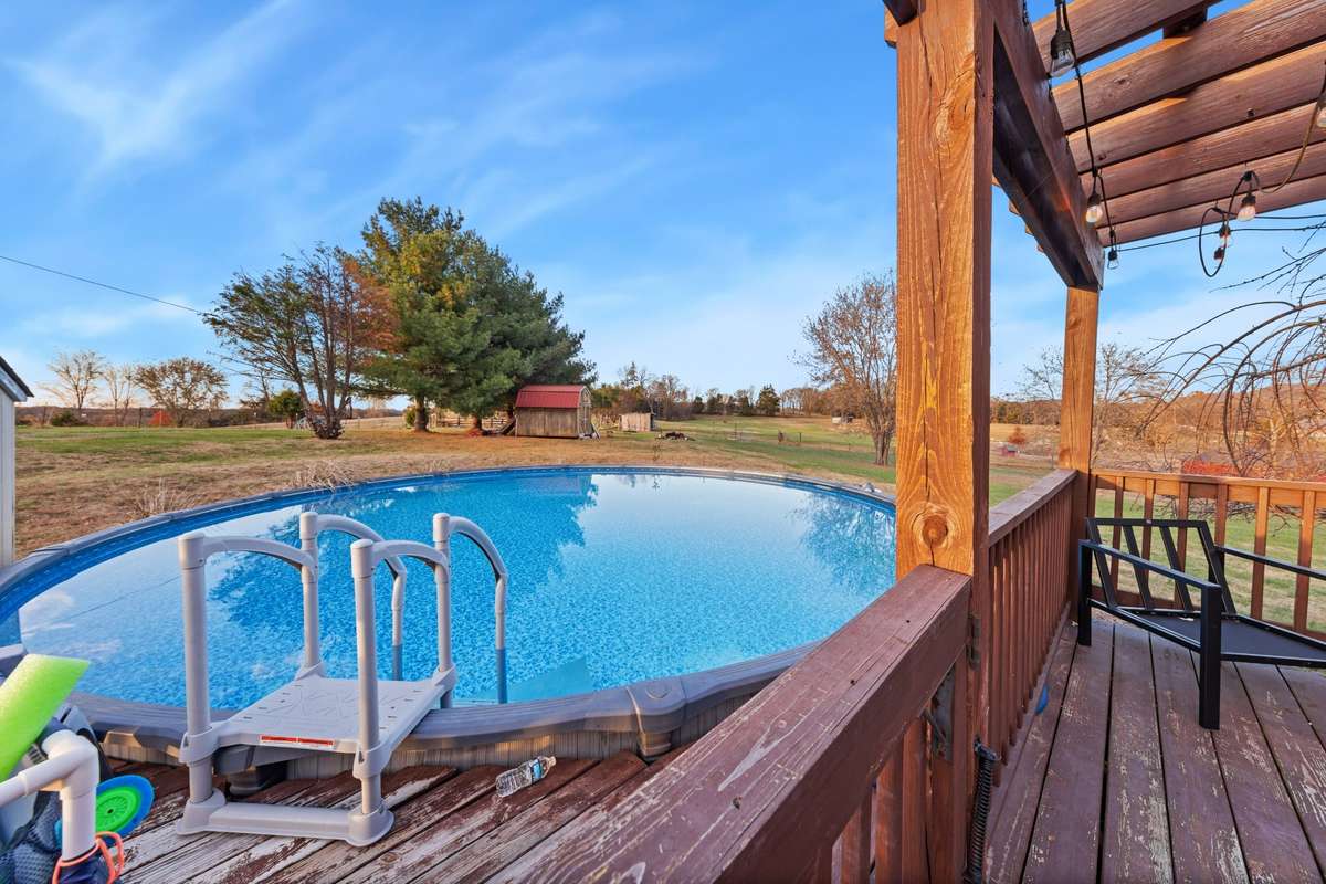 The living room includes a fireplace, and the backyard is designed for entertaining with a pool, hot tub, and spacious deck overlooking the property. No HOA and no restrictions, bring your animals and let them roam.