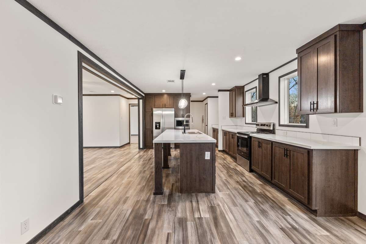 Beautiful Manufactured Home on . 86 Acres! Spacious 56’ x 26’8” New Mfg Home on permanent foundation featuring a bright, open- concept floor plan. The large kitchen is the heart of the home, complete with all- new appliances and an oversized kitchen island—perfect for cooking, entertaining, and gathering. The home offers a convenient washer and dryer hook- up, three comfortable bedrooms, and two full bathrooms. Situated on a generous . 86- acre lot, this property provides plenty of room to enjoy outdoor living in a country setting while still offering modern comfort inside.