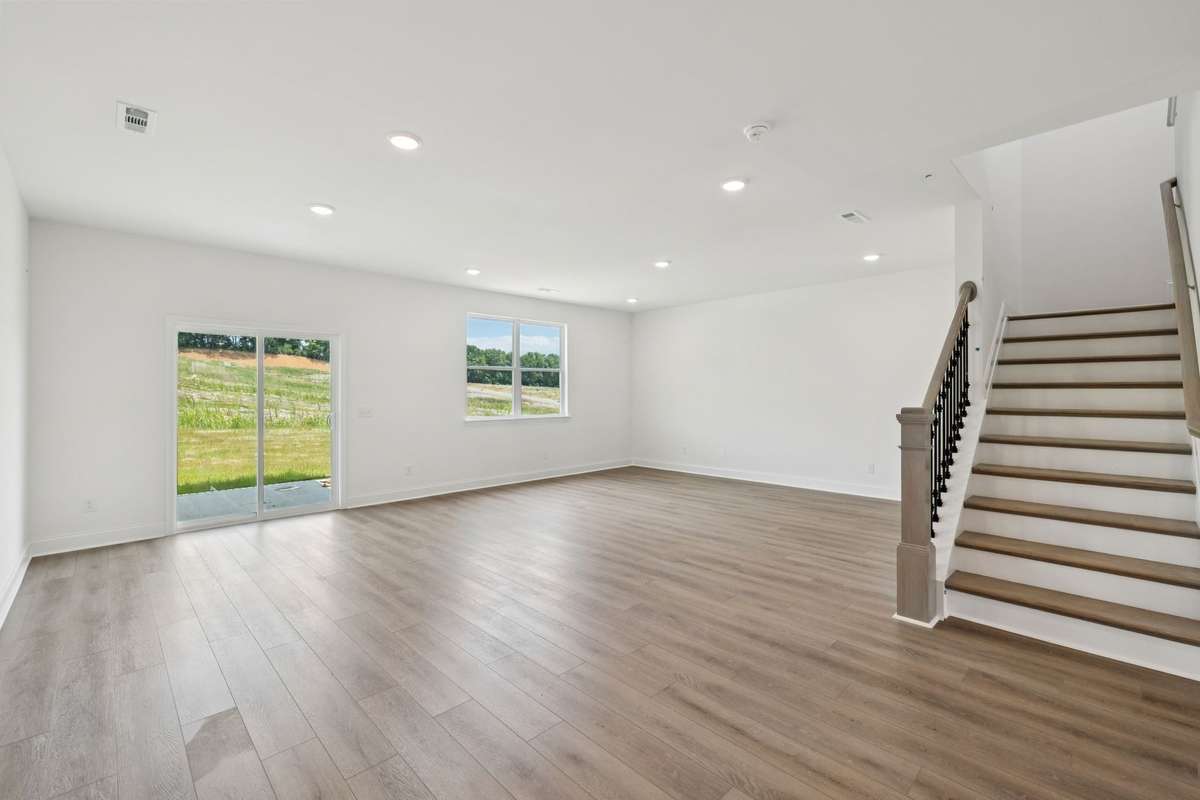 Luxury vinyl plank (LVP) flooring is included throughout the main living areas on the 1st floor. We have also included hardwood stairs with open-rail spindles as an added design element.