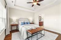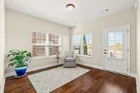 The main level offers two bedrooms and two full baths, including an owner’s suite with a tray ceiling and triple windows, and a separate sun room/ office; while the upstairs bonus room with a third full bath is perfect for guests, grandchildren, hobbies, or a home office. The open- concept living area is filled with natural light, enhanced by the end- unit location and additional windows throughout, and showcases beautiful hickory wood flooring throughout the living area and owner’s suite.