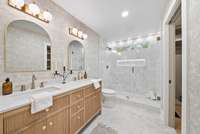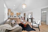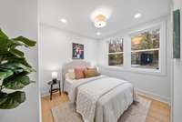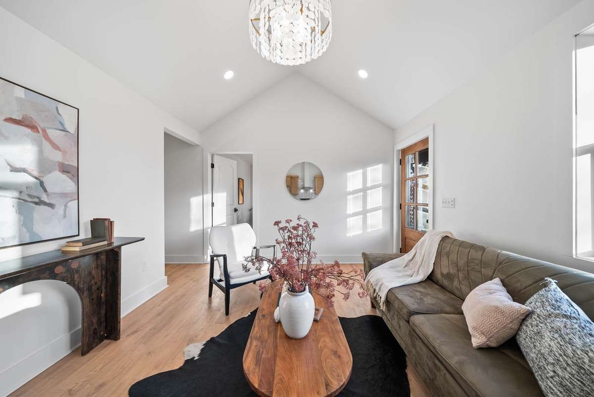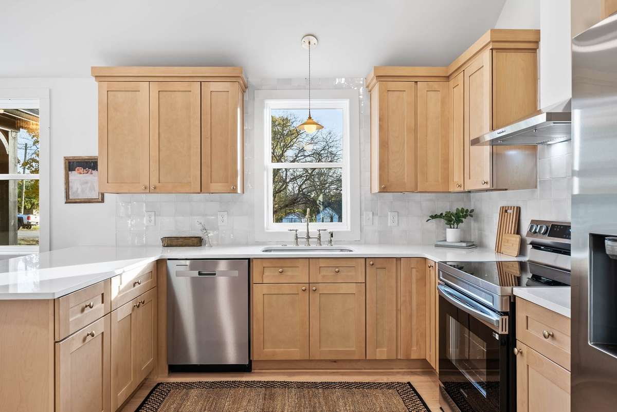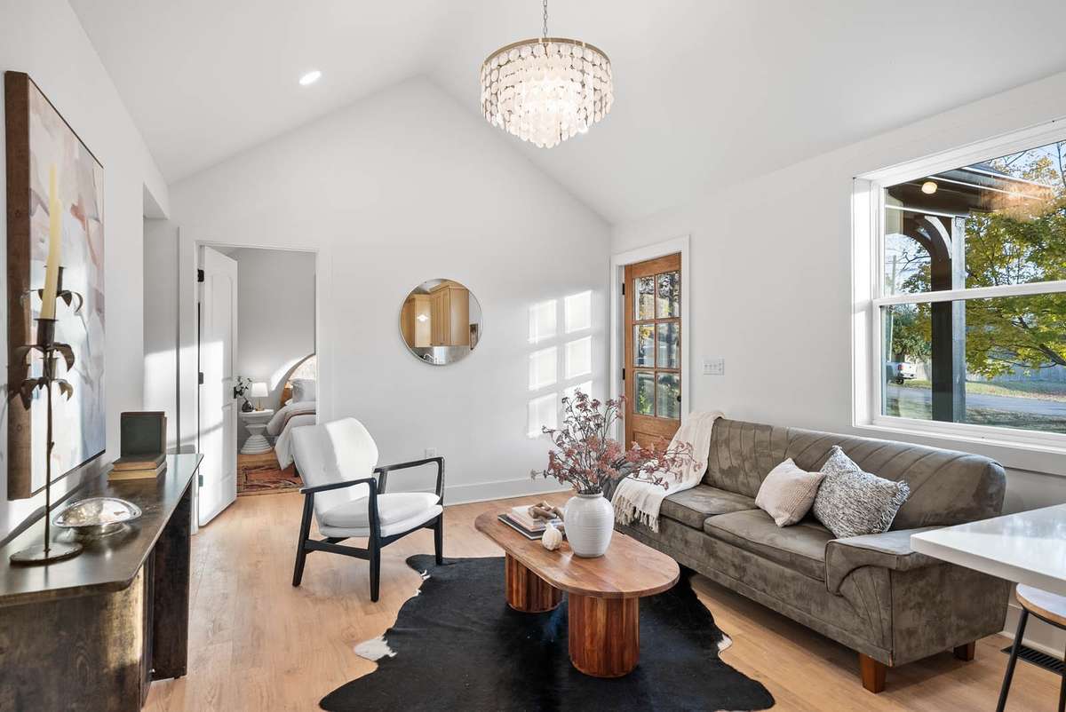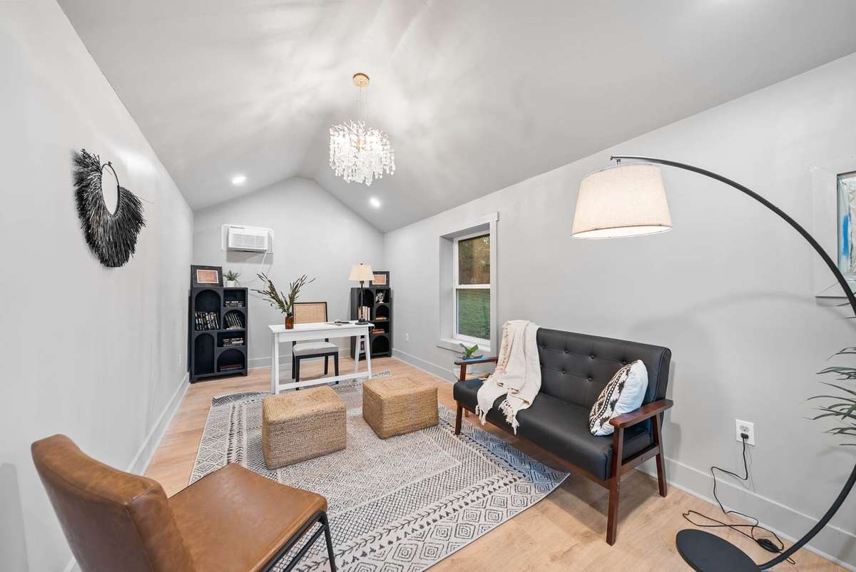 Completely reimagined and rebuilt, this stunning 2- bedroom, 2- bath home perfectly blends modern design with timeless comfort. Located on a half- acre lot, this property also includes a detached office/ garage space, offering flexibility for remote work, creative projects, or a studio setup. Step inside to discover a bright, open floor plan designed for entertaining. The kitchen shines with all- new appliances, custom hardwood cabinets, and modern fixtures, complemented by a wet bar area ideal for hosting. Every detail has been carefully considered, from the new roof, HVAC ( 3 years old) , and plumbing, to the new windows, framing, and floor joists, making this home truly move- in ready. The primary suite is a showstopper, featuring soaring ceilings with an exposed beam accent and a large picture window that floods the room with natural light, a luxurious en- suite bathroom with a dual vanity and tiled walk- in shower, and a custom walk- in closet. The guest bedroom and second full bathroom both feature thoughtful updates for comfortable living. Outdoors, the covered front porch offers a welcoming entrance, while the fully fenced backyard provides privacy and space to relax. The restored brick fireplace/ grill combo, painted black to match the home’s bold modern exterior, creates a perfect setting for outdoor gatherings. With a tankless water heater and every major system upgraded, this home is better than new, delivering thoughtful craftsmanship, modern convenience, and a design made for today’s lifestyle.