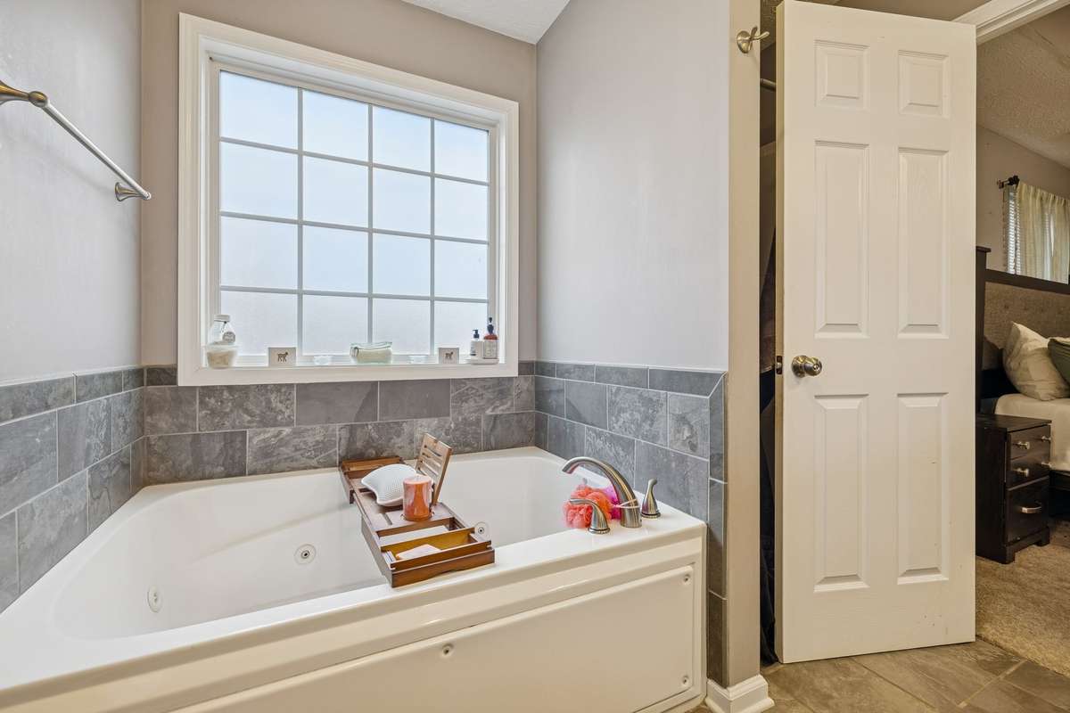 Primary bath with separate soaking tub and shower, offering comfort and functionality.
