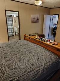 Like new manufactured home on a permanent foundation. The home has a spacious driveway to fit multiple cars, boats, or other vehicles. Walk in the front door to a huge open kitchen/ living area with eat- in kitchen and large island. Great utility area/ mud room off of kitchen leads to back deck to enjoy views of green space behind property. Huge owners suite with attached primary bathroom attached to very spacious walk in closet is on its own side of the house. Two additional bedrooms and full bathroom are on other side of the house. Don' t miss out on this beautiful home in a peaceful neighborhood. Home to be sold as- is.