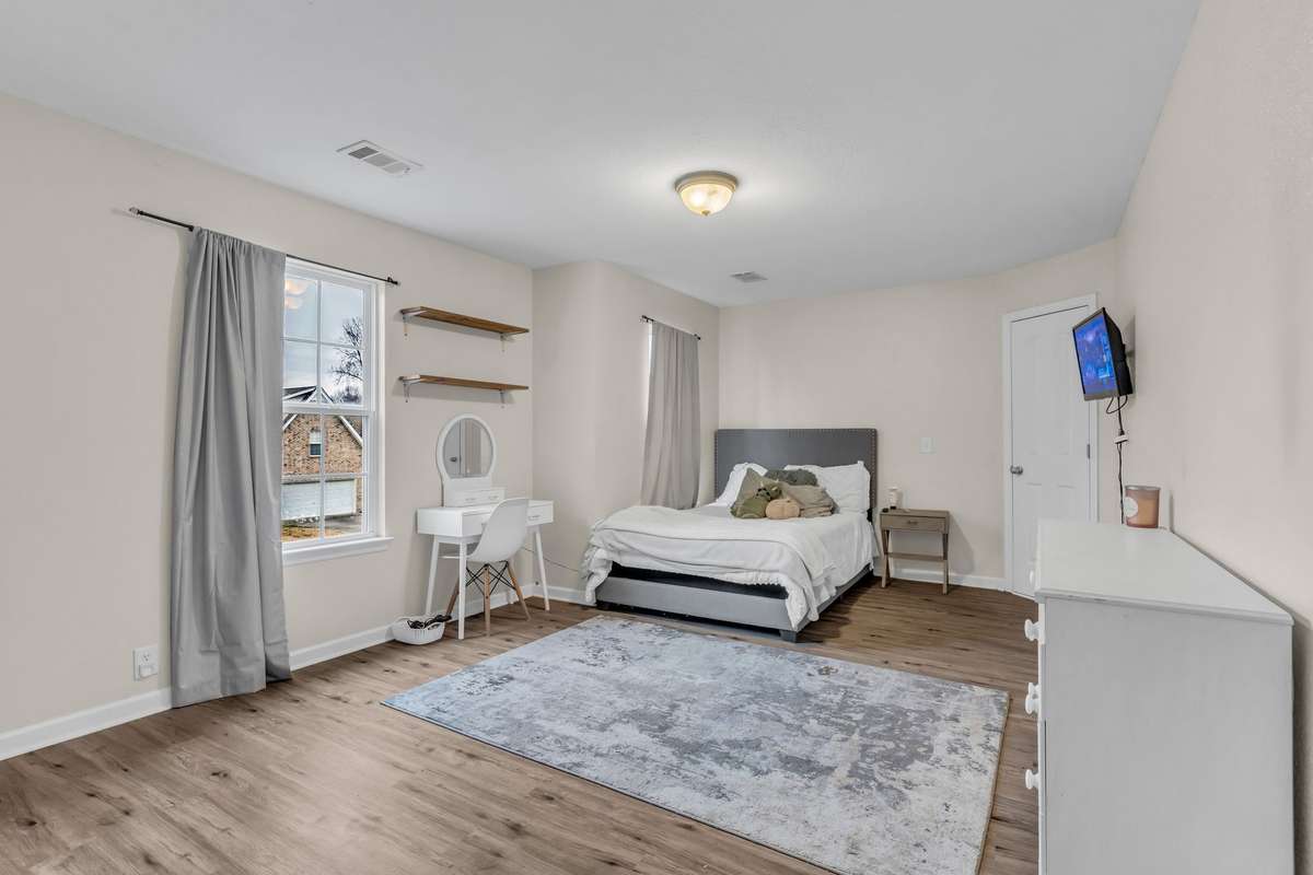 This spacious, family- friendly home offers over 2, 600 square feet of comfortable living with saoring ceilings and an open floor plan designed for everyday life and entertaining. The main- level primary suite features a separate shower/ soaking tub, his- and- her vanities, and a huge walk- in closet, creating a relaxing retreat for parents. A formal dining room, cozy living room with a wood- burning fireplace, and a kitchen with a breakfast area provide plenty of space for family gatherings. The additional bedrooms are generously sized—perfect for kids, guests, or home offices. Step outside to enjoy a private backyard with mature trees providing natural privacy, plus an oversized fire pit ideal for family nights and outdoor fun. Located on a quiet cul- de- sac in a highly desirable neighborhood, this home offers easy access to I- 65, nearby restaurants, lakes, and boat docks, with downtown Nashville and Nashville International Airport less than 30 minutes away and Franklin, KY just a short drive. Neighborhood amenities include 2 playgrounds, pavillion with picnic tables, walking trail and a basketball court. Roof 1 yr old. Bank incentives are available for first- time homebuyers—ask for details.