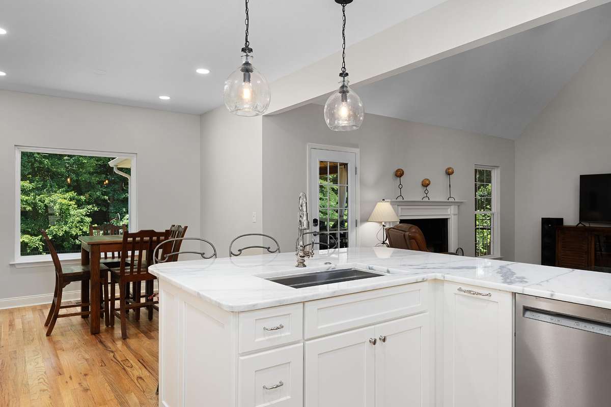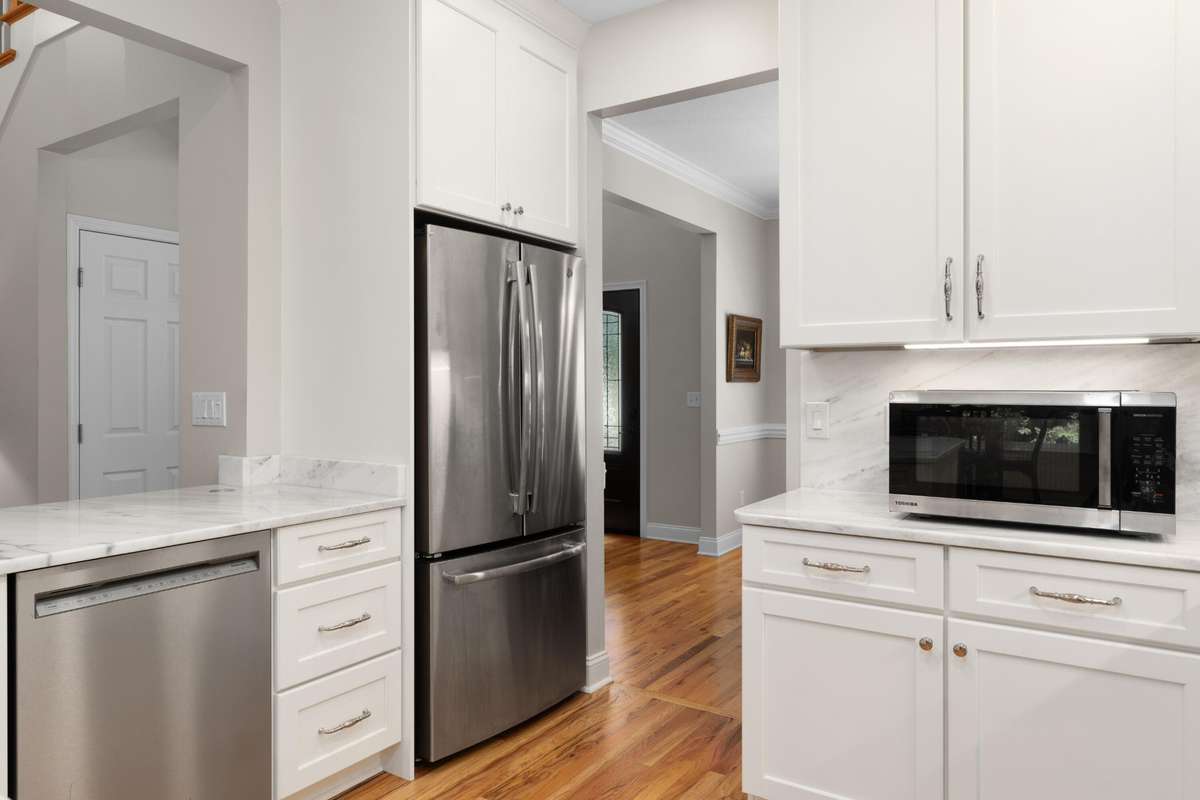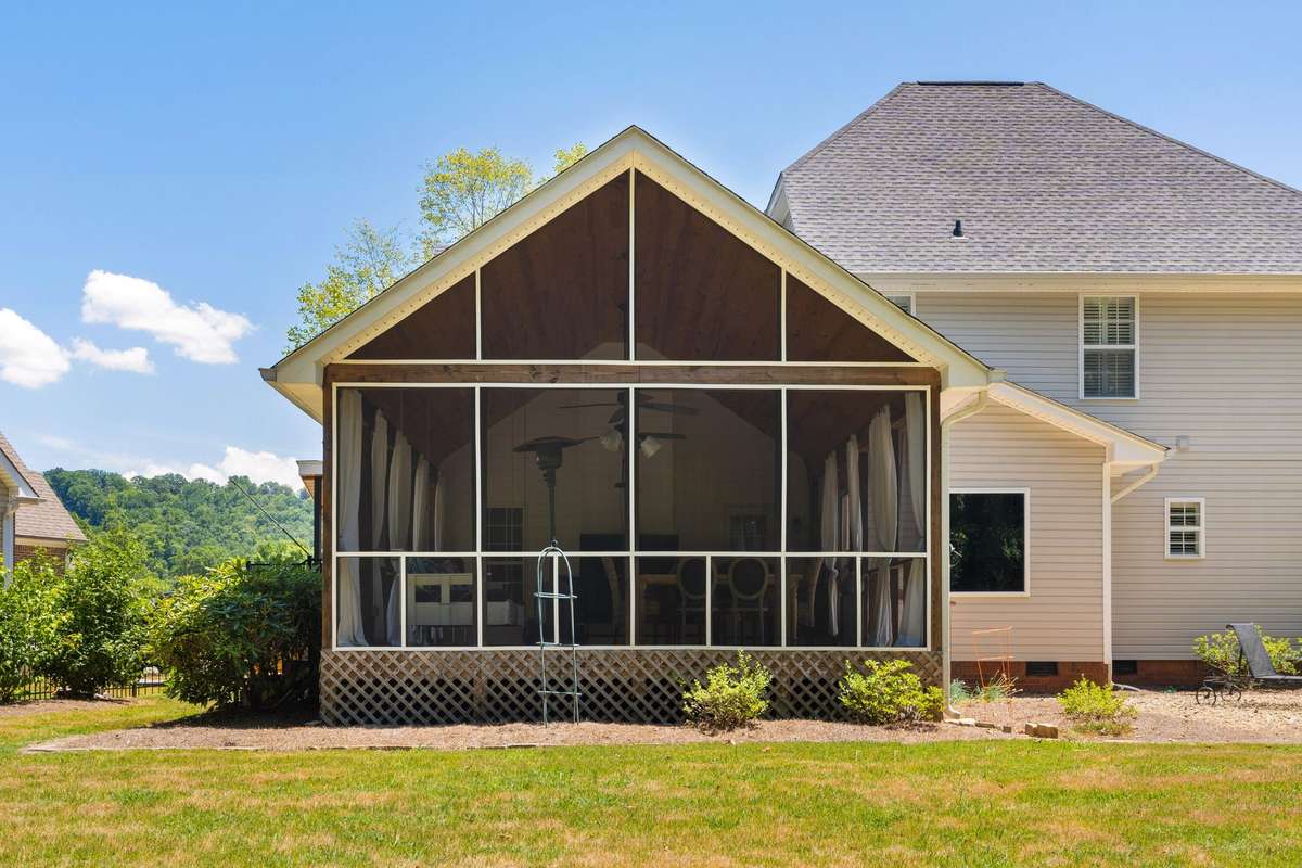 Fantastic opportunity in the established Old Stage Run neighborhood in the heart of Hixson close to schools, parks, medical facilities, shopping, restaurants and approximately 20 minutes from downtown Chattanooga. This 3 or 4 bedroom, 3 full bath home boasts quality finishes, a large, fenced back yard and an absolutely amazing screened in porch. You will love the finishes and updates, including the hardwood floors, recessed and decorative lighting, beautiful countertops, plantation shutters, and specialty ceilings. Your tour of the main level begins with the 2- story foyer that opens to the living room on one side and the formal dining room on the other. The great room is open to the updated kitchen and breakfast area and has a vaulted ceiling, gas fireplace and access to the screened- in porch providing a wonderful flow for indoor to outdoor entertaining or everyday living. The kitchen has quartzite countertops and backsplash, custom cabinetry with pull- out and soft- close drawers, stainless appliances, including a Viking convection oven with gas cooktop, and a level dining bar for meals on the go. The breakfast area has a wet bar with a separate ice maker. A hallway leads to the double garage, a full bath, a fantastic walk- in pantry, and the original 4th bedroom. The pantry was expanded by taking in the bedroom closet, but the pocket door from this room remains should a new owner prefer to convert part of the existing pantry back to a closet, but this room currently makes a great office and has shared access to the full guest bath. Head upstairs where you will find the three additional sleeping quarters, including the primary bedroom which has a trey ceiling and room for a small sitting area, as well as the primary bath with dual vanity, jetted tub, separate shower and a nice walk- in closet. The other two bedrooms are connected by a shared bath.
