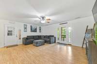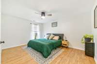 Inside, the home offers a bright, open floor plan with a recently updated kitchen featuring stainless steel appliances, along with remodeled bathrooms, new ceiling fans, upgraded light fixtures, and an Ecobee smart thermostat. Washer, dryer, and refrigerator remain, allowing for an easy, move- in- ready transition. The attached garage is fully insulated and currently used as an office, making it ideal for remote work or flexible bonus space ( not included in square footage) .