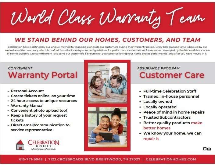 From Nashville, S on 65 to 396 (Saturn Pkwy) Follow towards GM entrance. Stay on 396 as it curves to the left and becomes Beechcroft. L on Cleburne and R into subdivision. Celebration Homes model home address is 304 Eastwood Lane Spring Hill, Tn 37174
